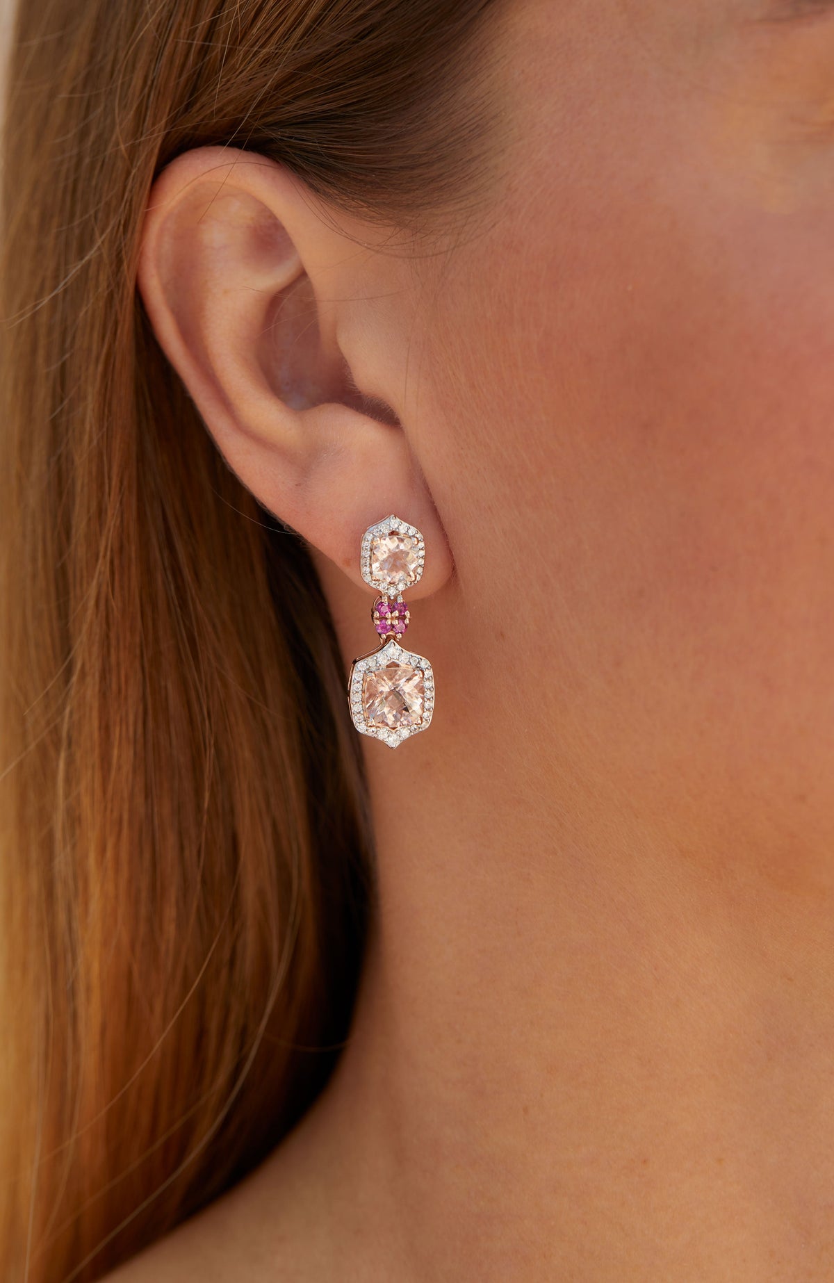 Crafted in 18k rose gold-plated sterling silver with morganite and cubic zirconia stones. Length: 1.3 inches. Post-back closures.