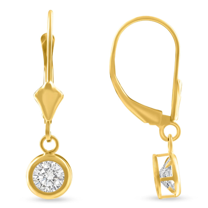 Handcrafted in 14K yellow gold with two round brilliant cut lab-grown diamonds, totaling 1ct. Bezel set with lever-back earrings.