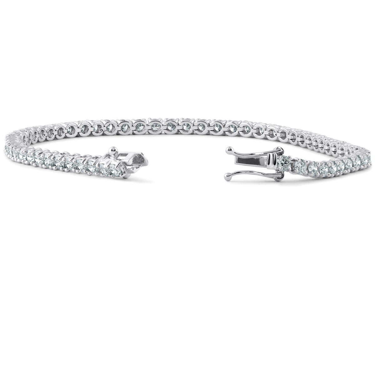 Handcrafted in 18k white gold with 58 round brilliant cut lab-grown diamonds (5ct total weight). Diamond clarity: VS, color: G-H. Double lock clasp. Length: 7'.