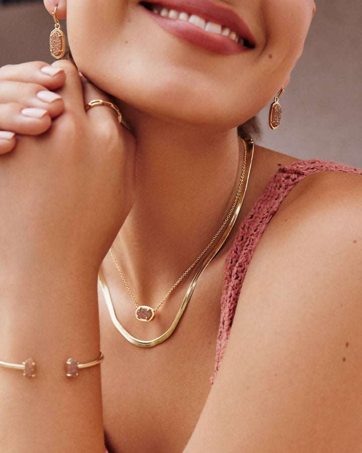 This Grayson Gold Stone Cuff Bracelet in Spice Drusy by Kendra Scott will quickly become your favorite go-to accessory. Featuring a stunning spice drusy stone, the cuff bracelet is crafted with 14k gold over brass. The adjustable design allows for a comfortable fit, while the oval-shaped stones at both ends provide a bold, eye-catching finish. This bracelet is perfect for making a statement with any outfit.