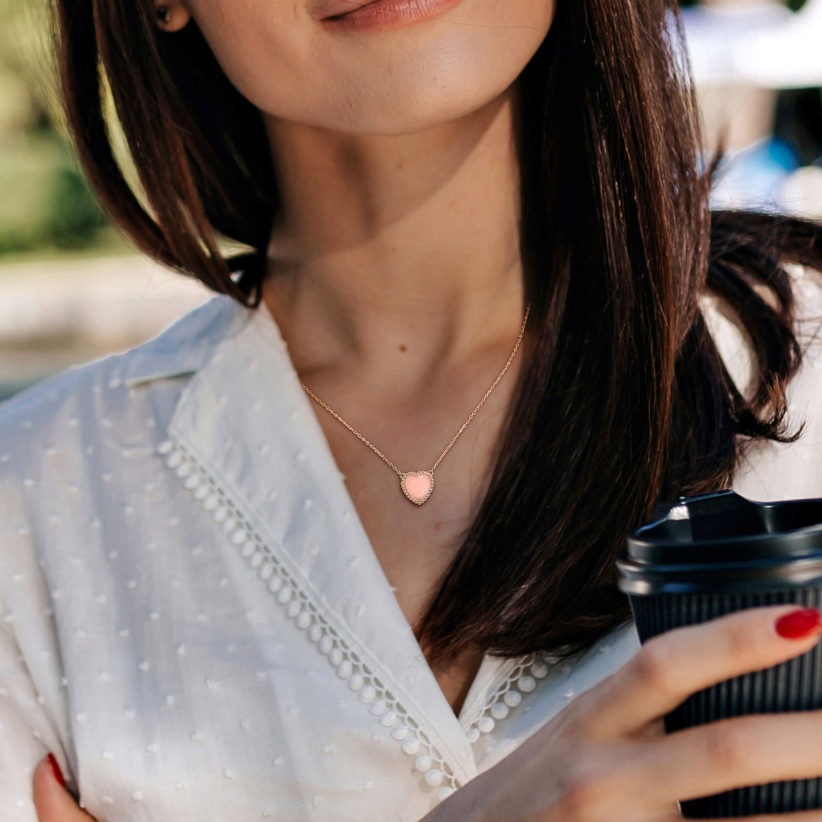 This 5ct TGW Pink Opal Necklace with Chain in Pink Silver by Mimi & Max is an exquisite statement piece. The 5-carat pink opal, known for its stunning hue and iridescence, is set in elegant pink silver, offering a soft yet captivating glow. Measuring 17 inches in length, this necklace is perfect for both special occasions and adding a touch of sophistication to your everyday look.