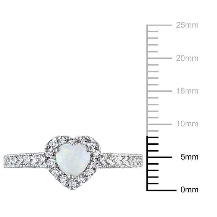Mimi & Max 1/7ct TDW Diamond and Opal Heart Halo Ring in Sterling Silver