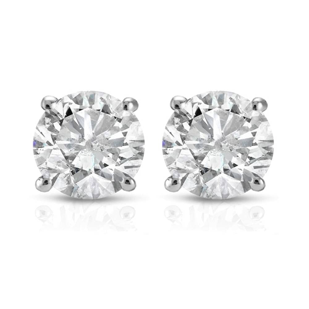 Crafted in 14K white or yellow gold with 1 total carat weight of natural round brilliant-cut diamonds (I2-I3 clarity, I-J color). Includes push backs and IGI certification.