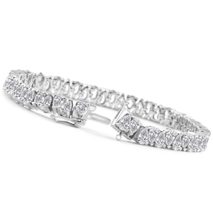 Handcrafted in 14K white gold with pear shape lab-grown diamonds, totaling 10ct. Double lock clasp for security.