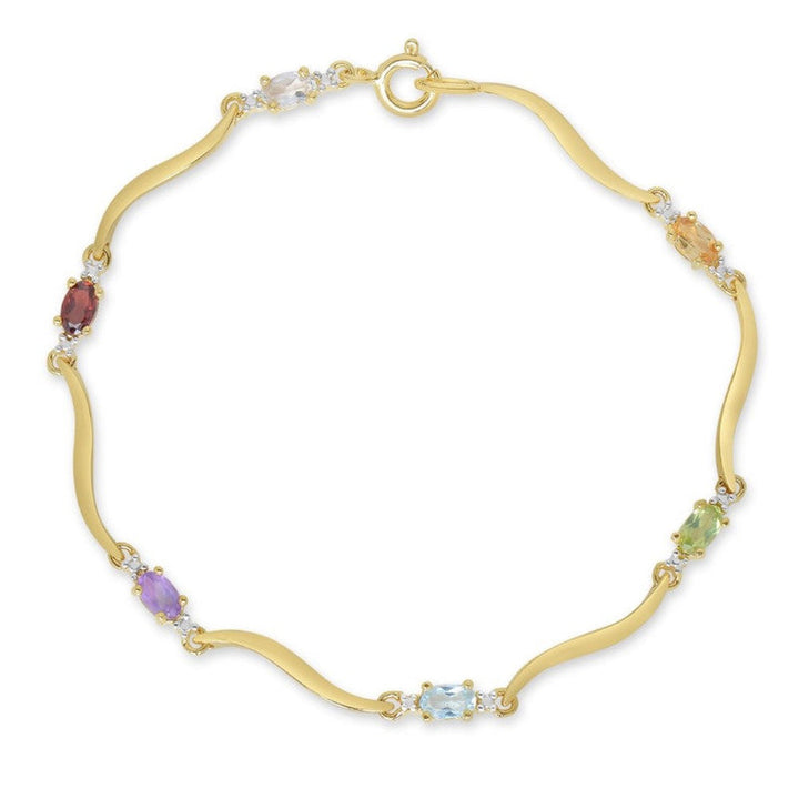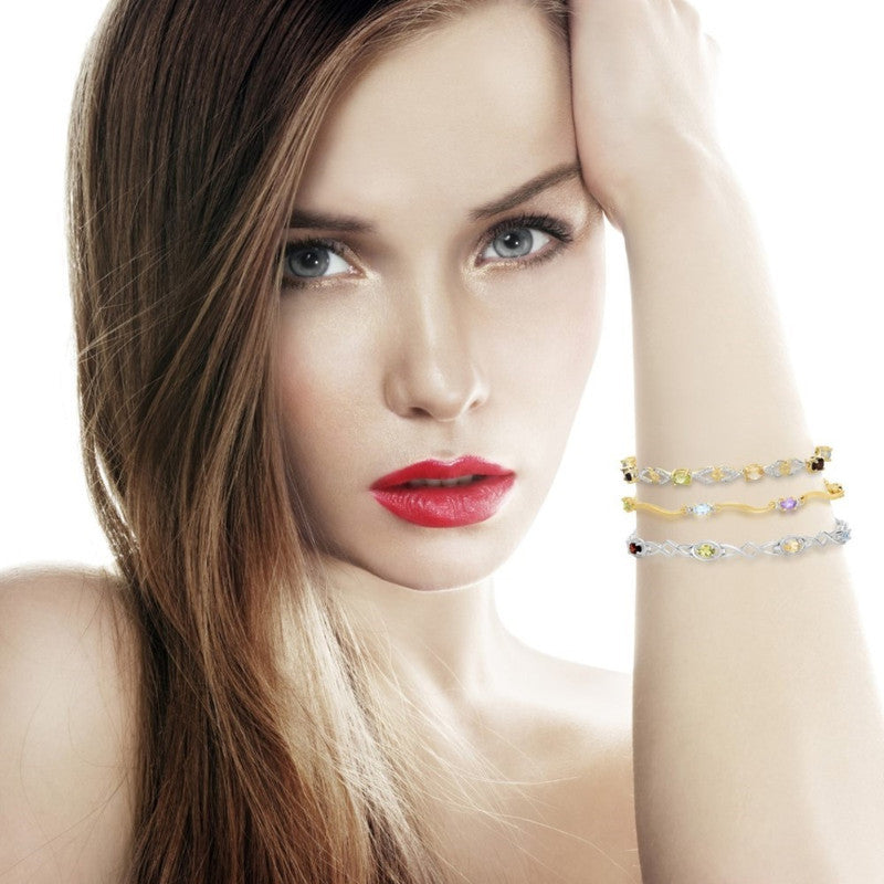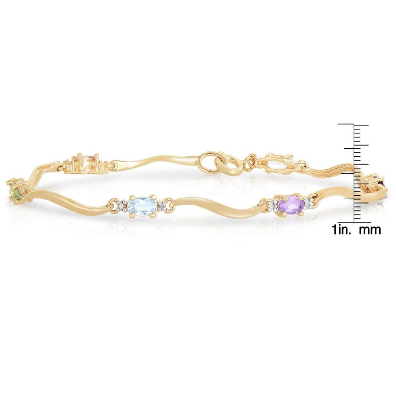 Crafted in sterling silver with 14k yellow gold plating and 3mm multicolor cubic zirconia stones. Length: 7.25 inches.