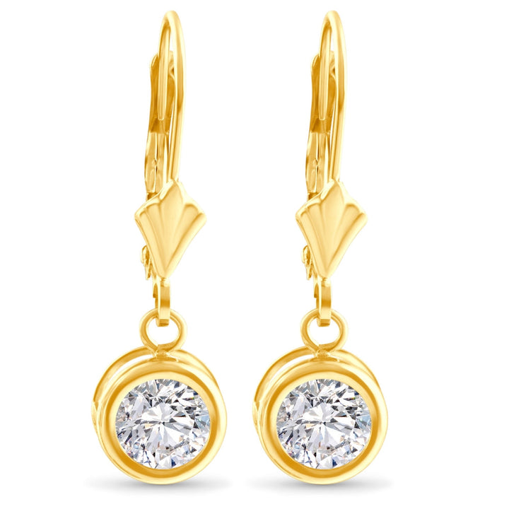 Handcrafted in 14K yellow gold with two round brilliant cut lab-grown diamonds, totaling 1.80ct. Bezel set with lever-back earrings.