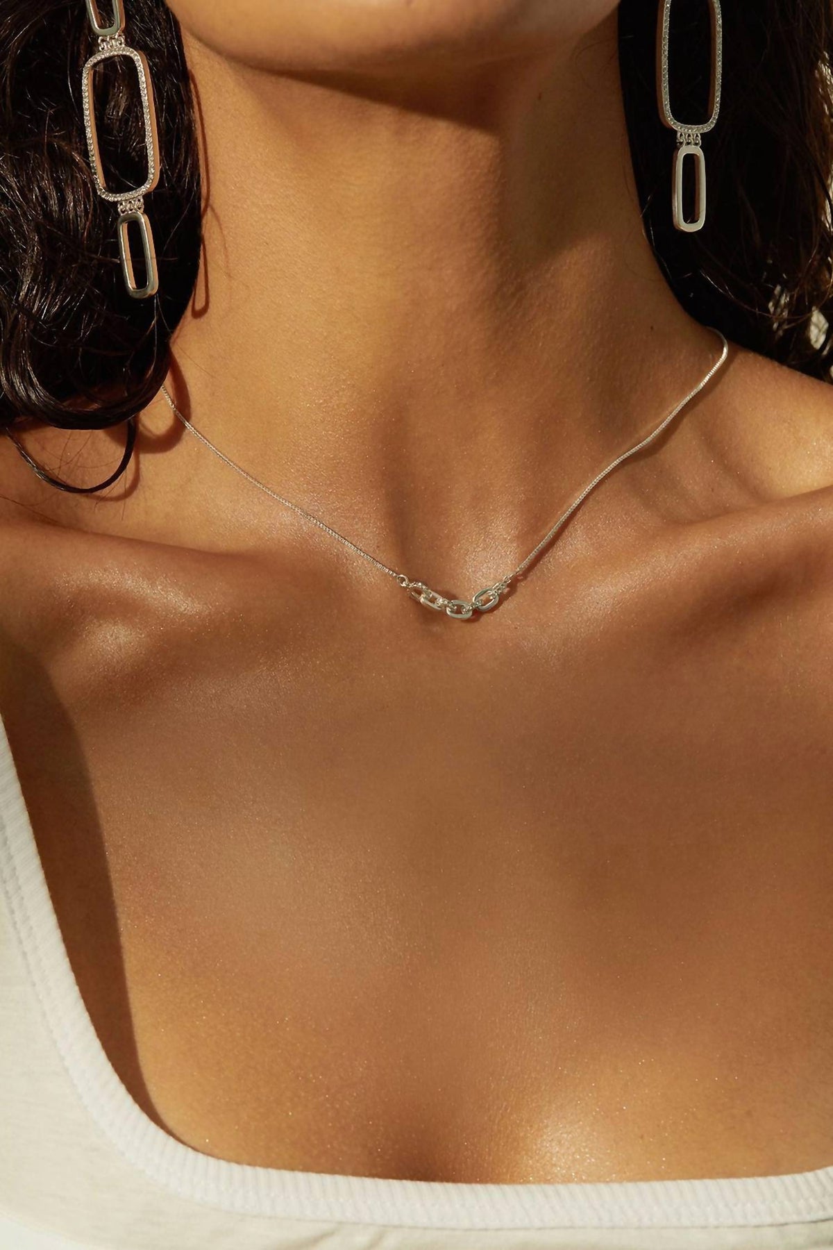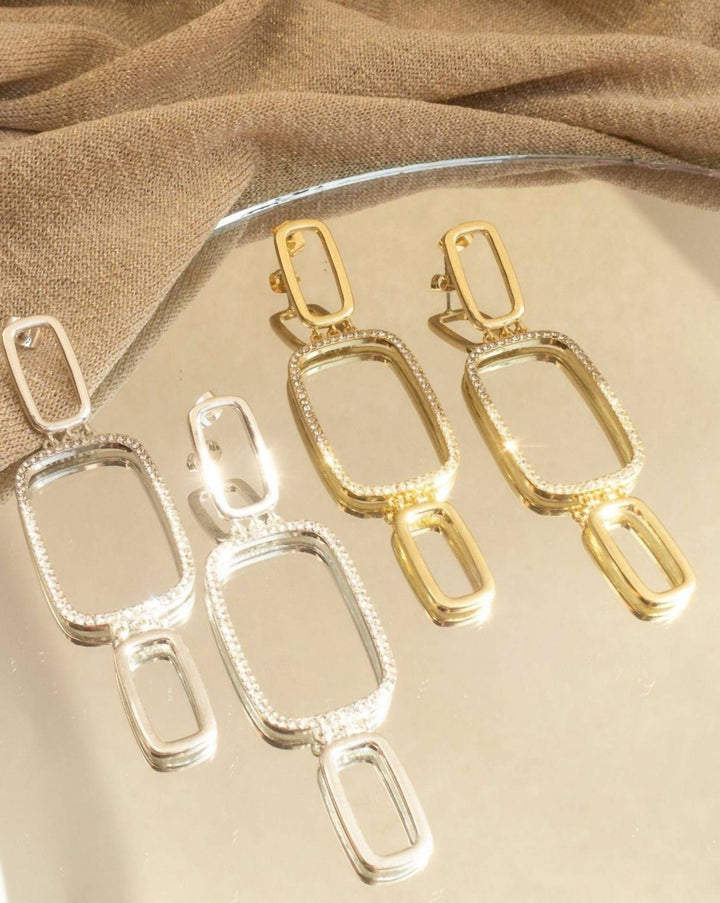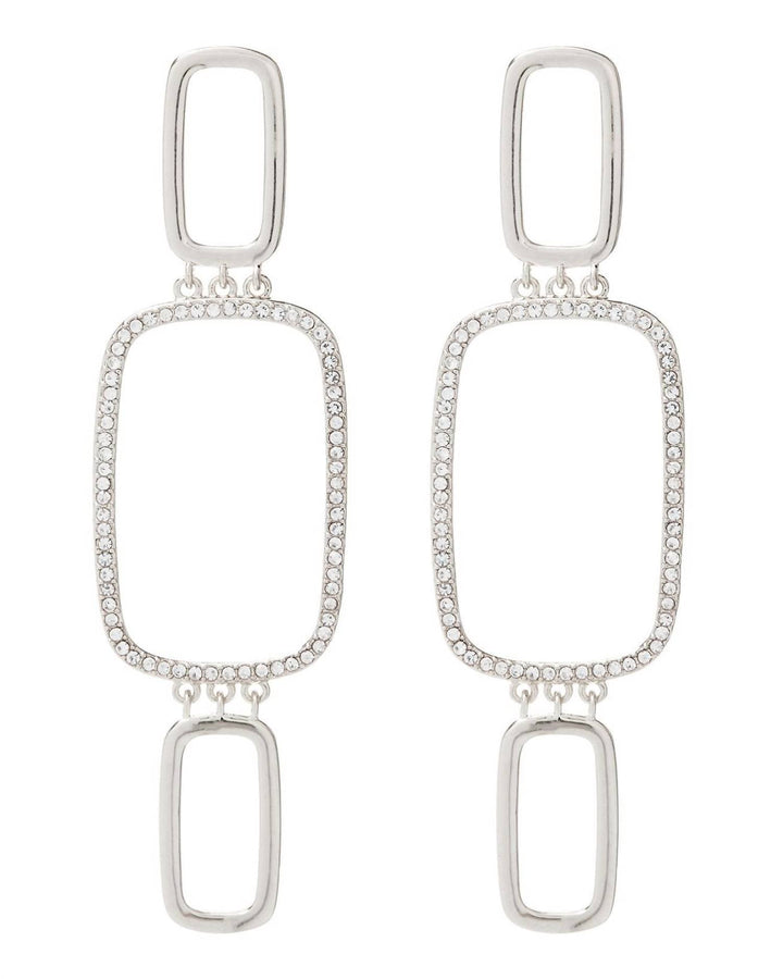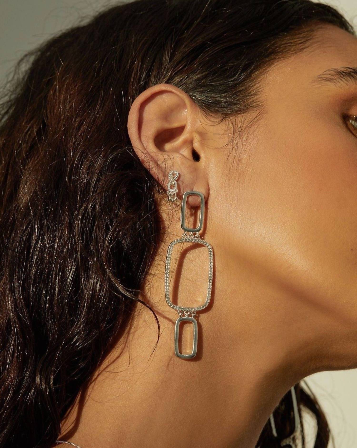 These Blair Chain Statement Earrings by Luv Aj bring a bold yet sophisticated edge to any look. Featuring silver-plated links with a pave-decorated middle link, these earrings offer the perfect balance of shine and structure. Designed to transition seamlessly from day to night, they’re a striking addition to any jewelry collection.
