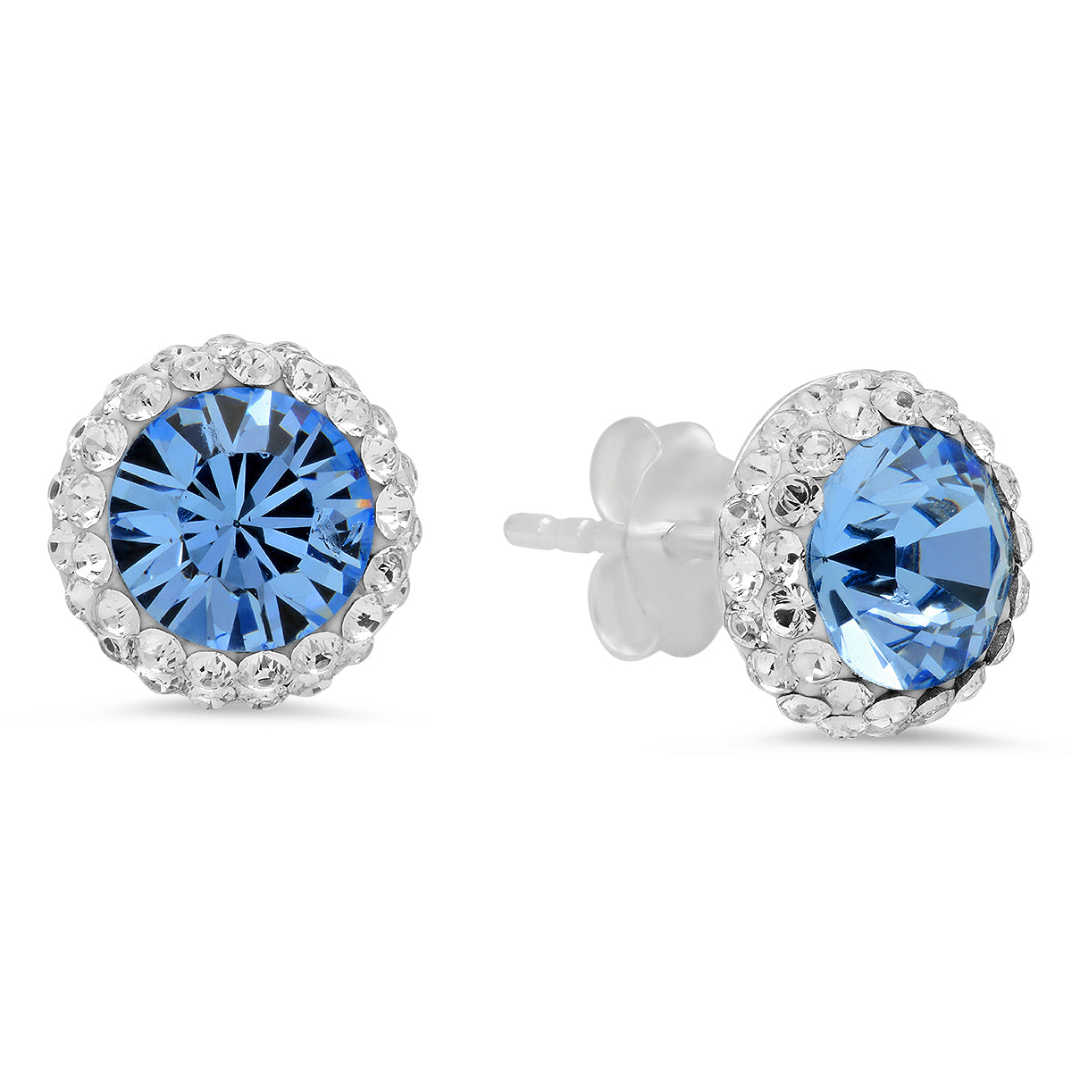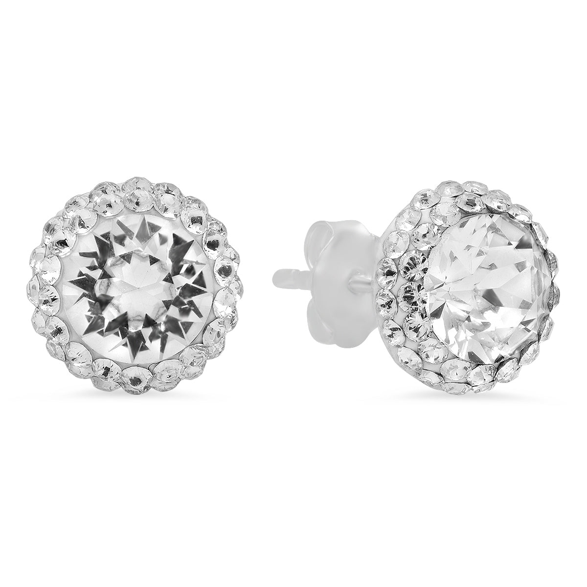 These Sterling Silver 6mm Crystal Halo Black Stud Earrings by MaxColor are a striking combination of elegance and sophistication. Featuring a 6mm crystal surrounded by a halo of sparkling stones, these black stud earrings are set in sterling silver. Their sleek design and bold color make them perfect for adding a touch of glamour to any outfit.