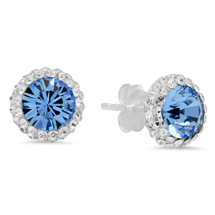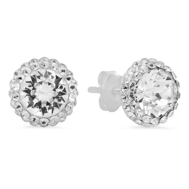 Sterling Silver 6mm Crystal Halo Black Stud Earrings