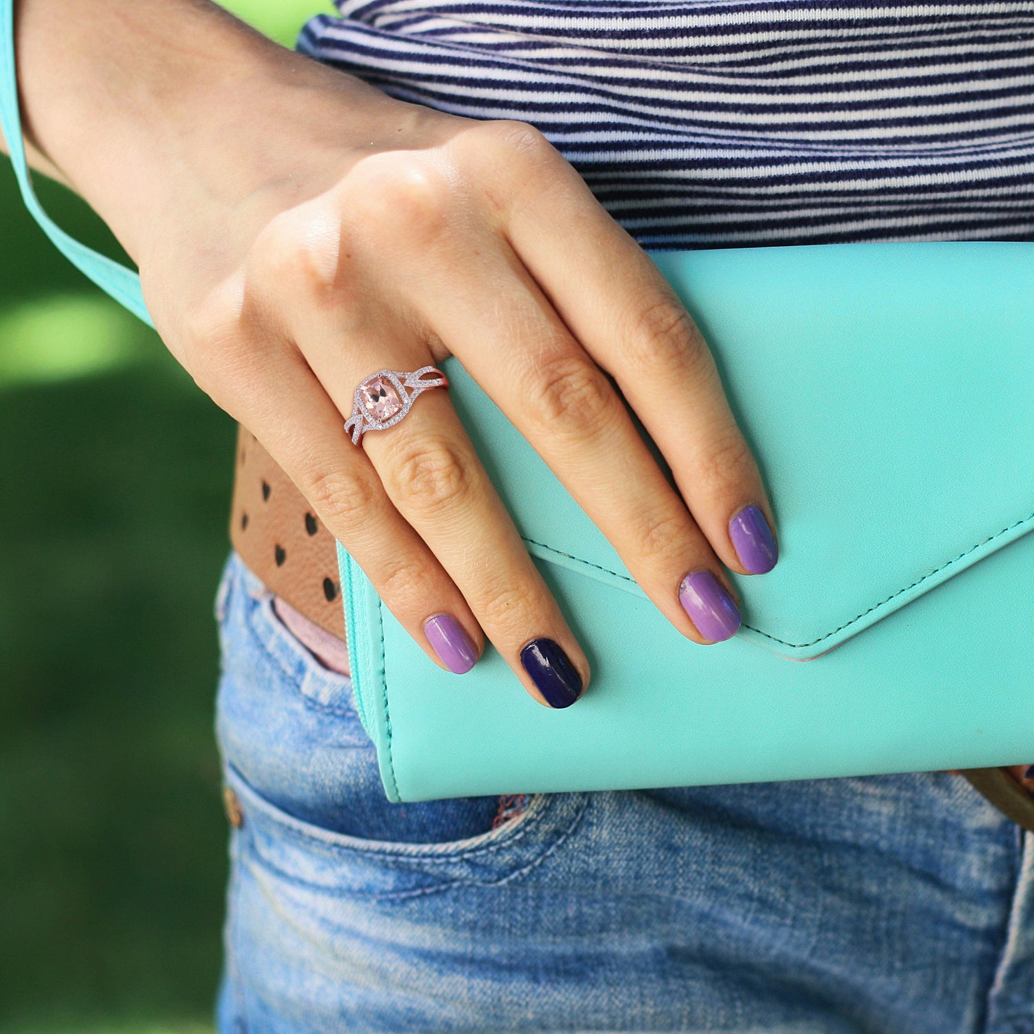 This Mimi & Max 1 1/3ct TGW Cushion-Cut Morganite and 1/6ct TDW Diamond Crossover Ring in 10k Rose Gold is a captivating piece that features a 7mm cushion-cut morganite at its center, surrounded by 58 round white diamonds. The unique crossover design adds an element of modern elegance, while the high-polish rose gold finish enhances the beauty of the gemstones. This ring is the perfect balance of romance and luxury.