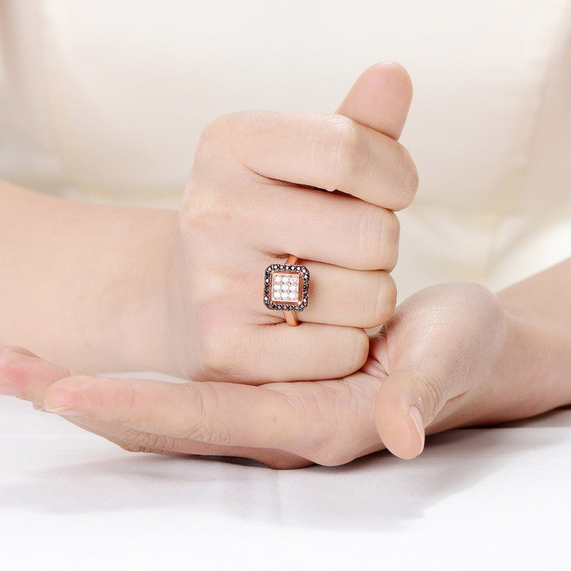 Sterling Silver 18k Rose Gold Plated with Black and Clear Cubic Zirconia Pave Ring