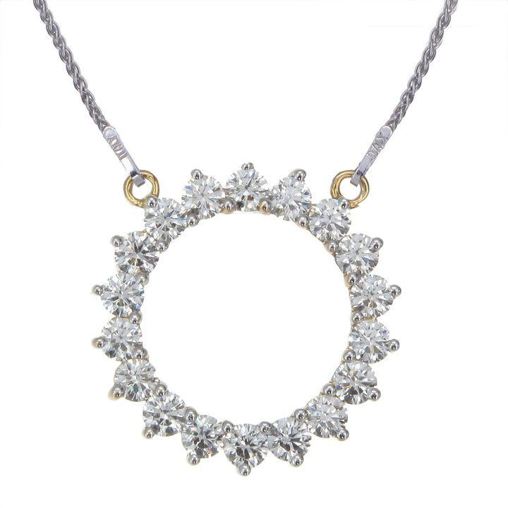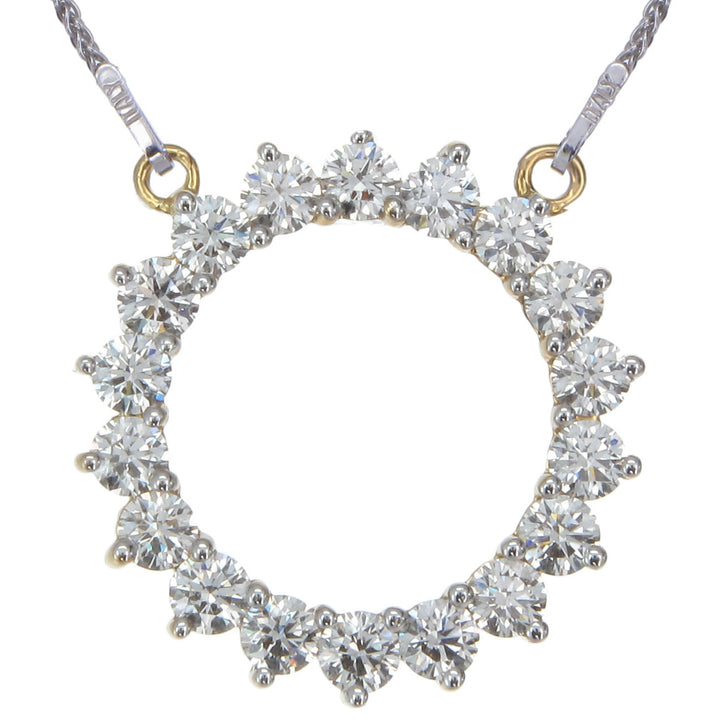 2 cttw Diamond Pendant, Diamond Circle Pendant Necklace for Women in 18K Yellow Gold with 18 Inch Chain, Prong Setting
