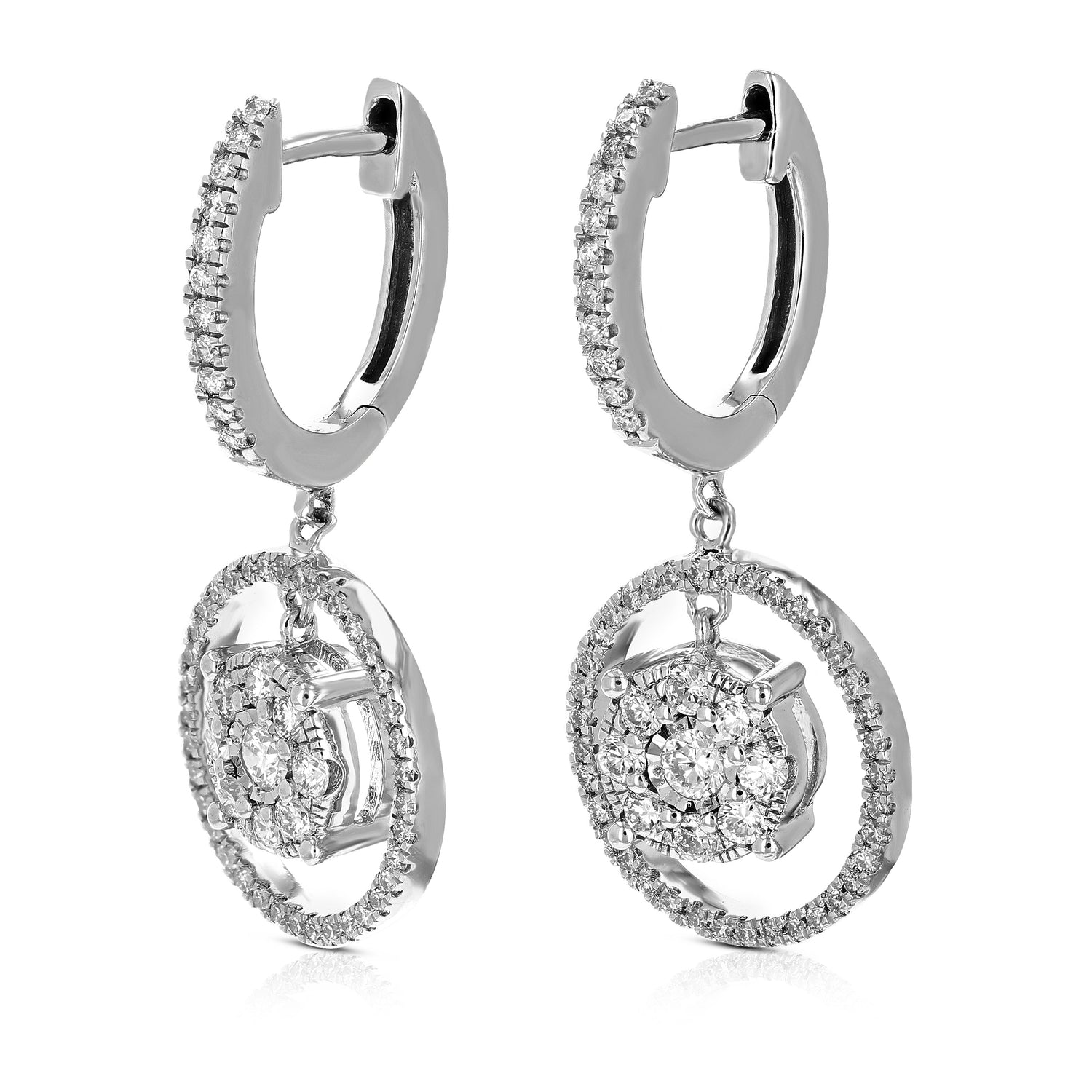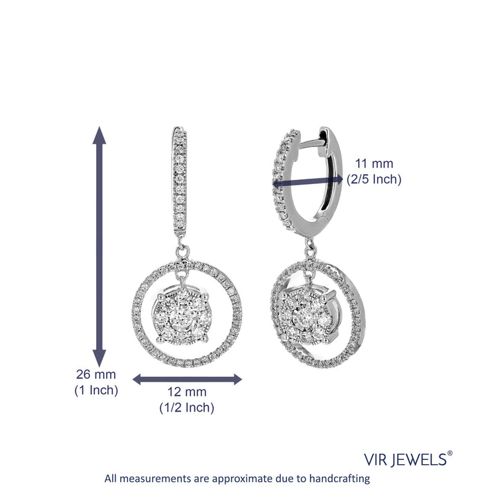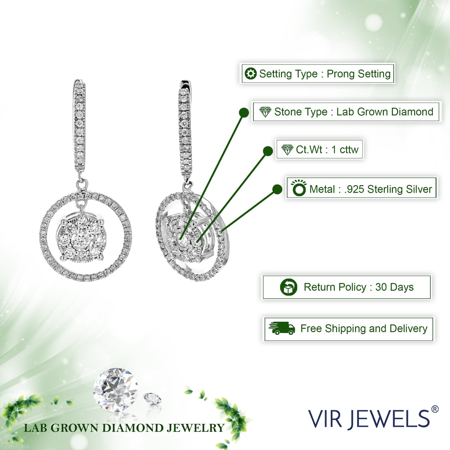 1 cttw 190 Stones Round Lab Grown Diamond Dangle Earring .925 Sterling Silver Prong Set, 2/5 Inch