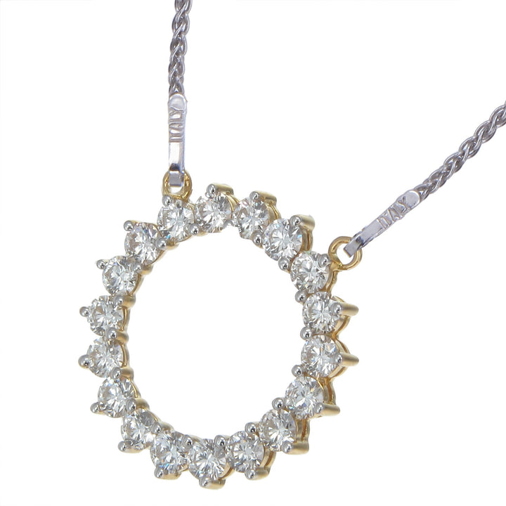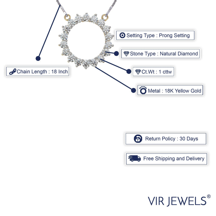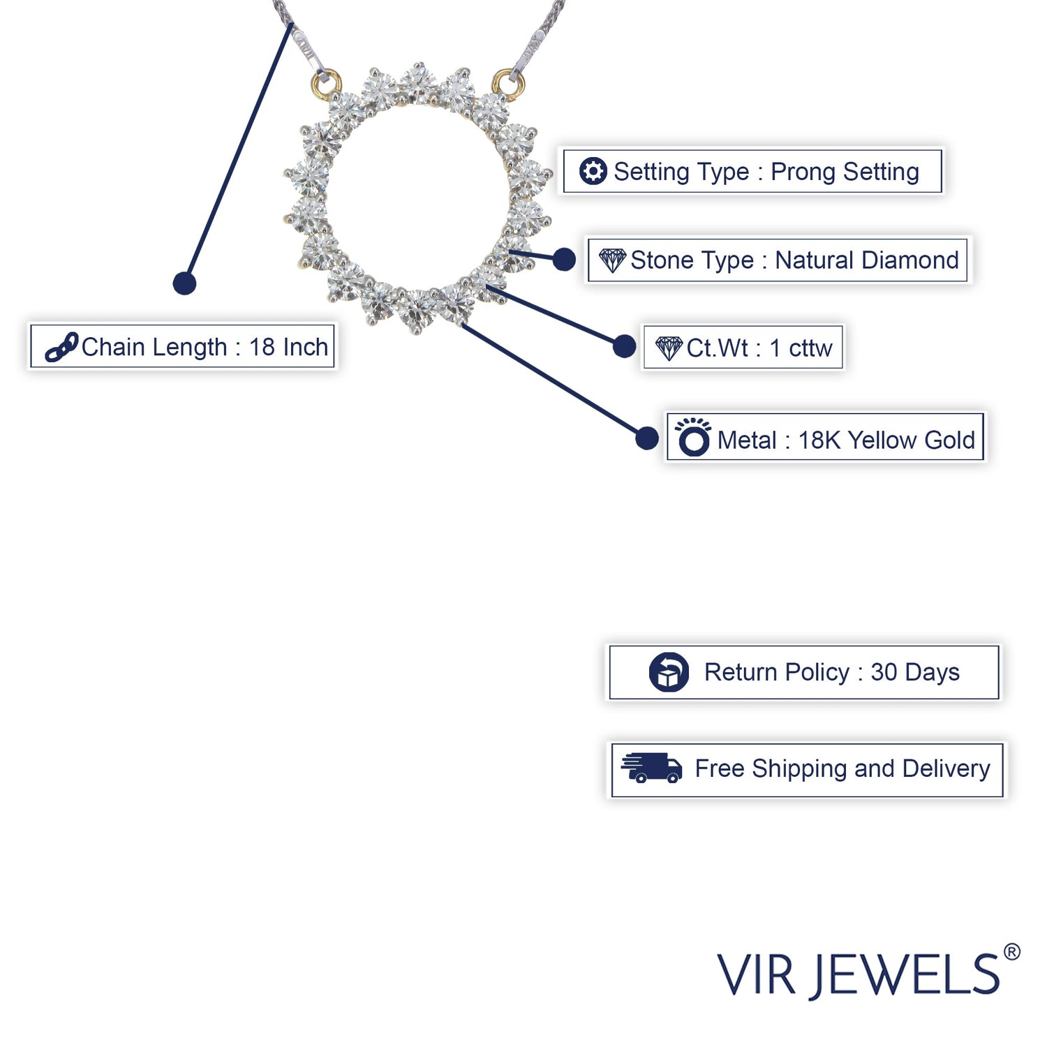 1 cttw Diamond Pendant, Diamond Circle Pendant Necklace for Women in 18K Yellow Gold with 18 Inch Chain, Prong Setting