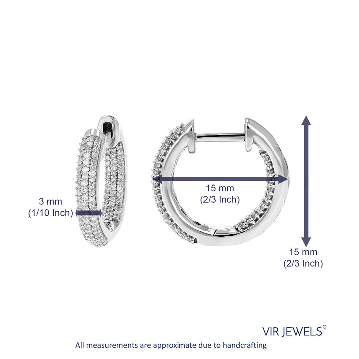 These 3/8 cttw Round Lab Grown Diamond Hoop Earrings by Vir Jewels feature 202 sparkling diamonds set in .925 sterling silver. The prong setting securely holds the diamonds, enhancing their brilliance and ensuring they are well supported. Lab-grown diamonds offer the same durability and clarity as natural diamonds, making these earrings an ethical and beautiful choice. With a width of 1/10 inch and a height of 2/3 inch, these hoop earrings add an elegant touch to any outfit, making them a perfect addition to your jewelry collection.