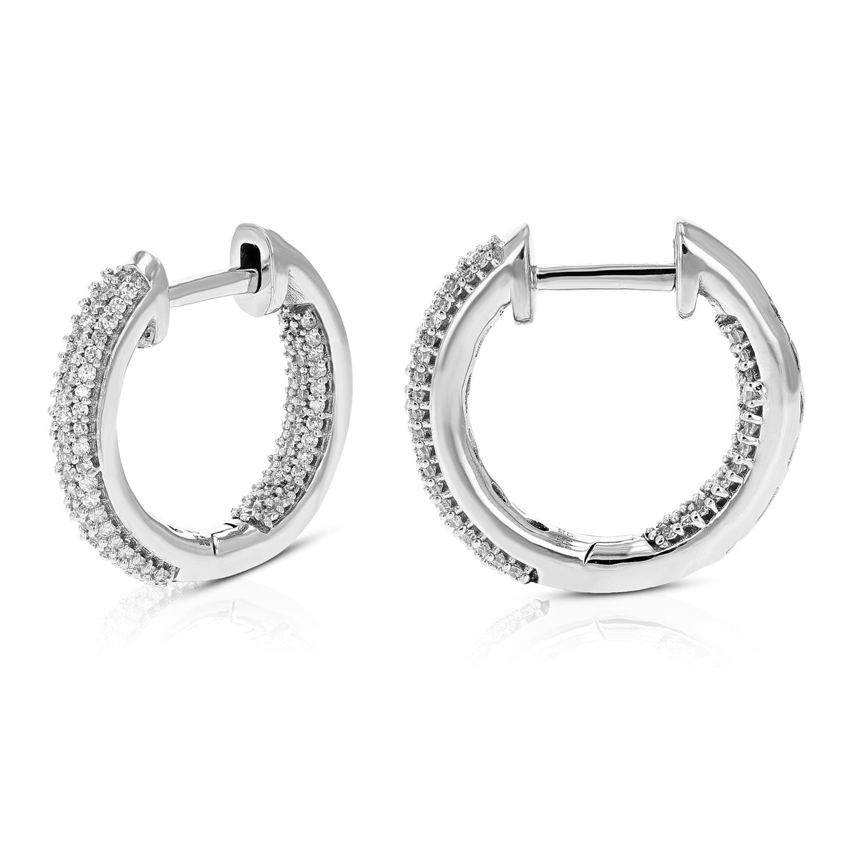 .925 sterling silver, 202 round lab-grown diamonds, 3/8 cttw, H-I color, SI1-SI2 clarity, prong setting, hoop earrings width: 1/10 inch, height: 2/3 inch.