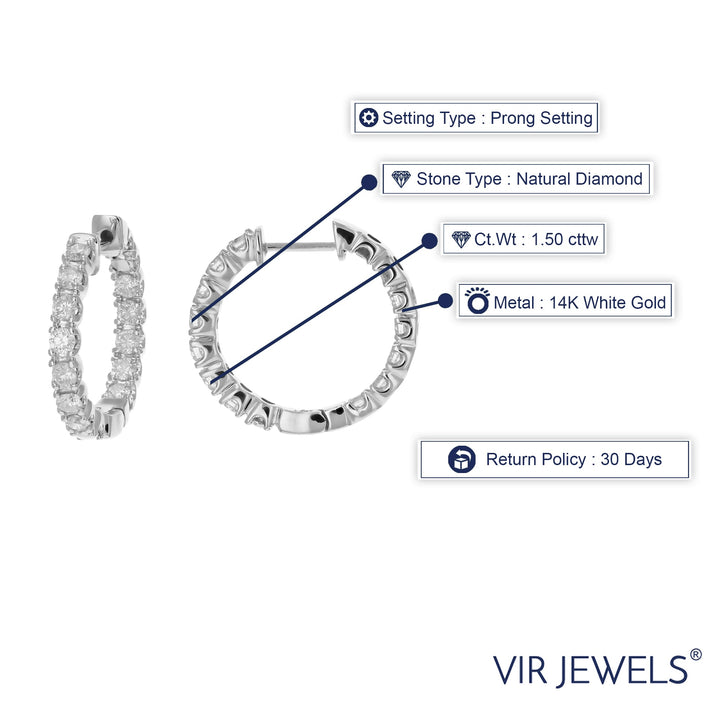 These AGS Certified Diamond Hoop Earrings by Vir Jewels are a radiant addition to any jewelry collection. Featuring 1.50 cttw of dazzling natural diamonds set in 14K white gold, these elegant inside-out hoops offer maximum brilliance from every angle. With their classic yet contemporary design, these earrings are the perfect statement of sophistication, ideal for both everyday luxury and special occasions.