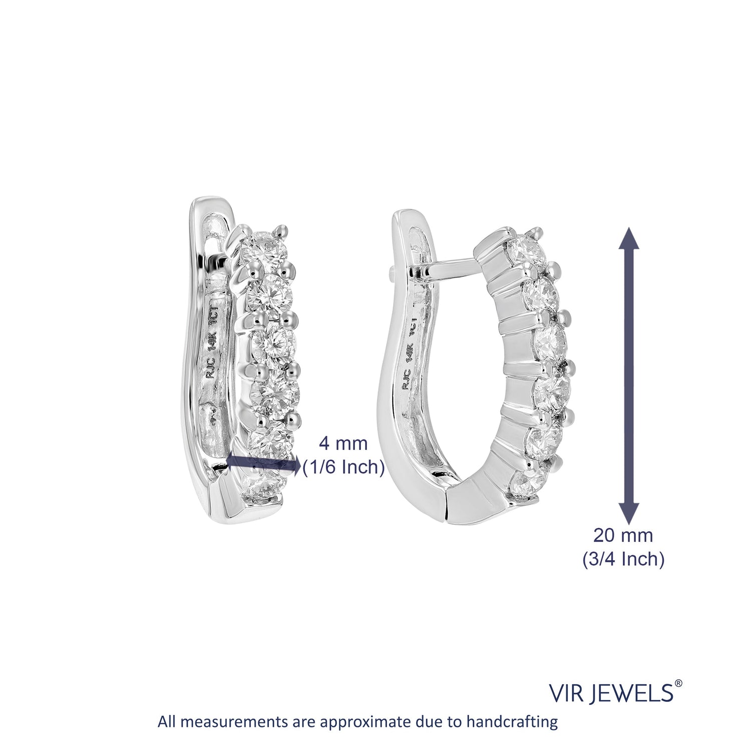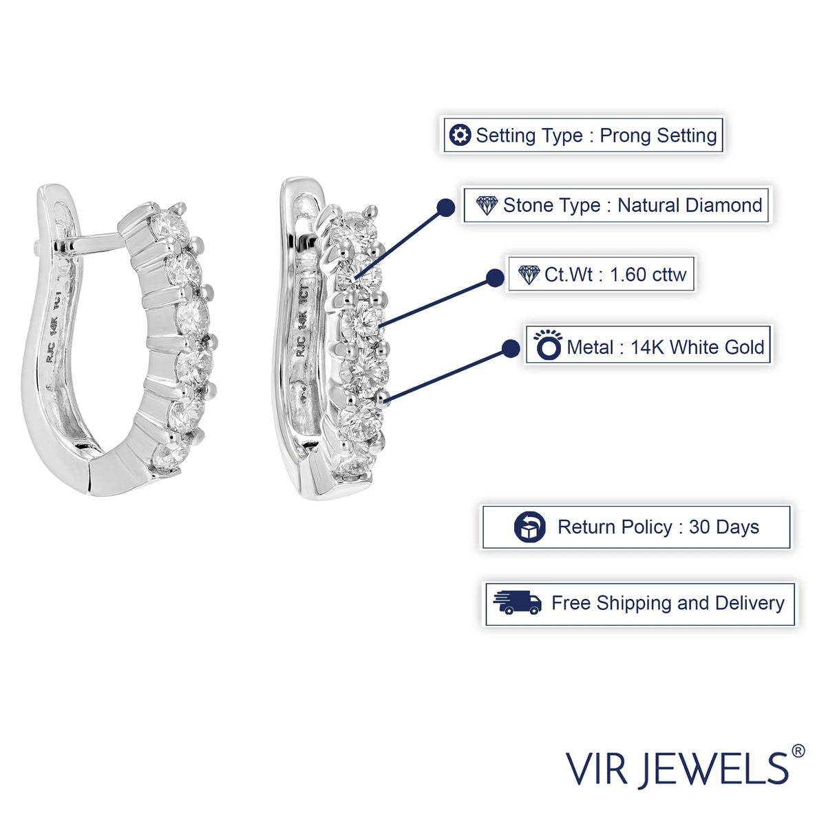 These 1.60 CT TW Diamond Hoop Earrings by Vir Jewels radiate timeless elegance and brilliance. Set in luxurious 14K white gold, these hoops feature 12 dazzling natural diamonds in a classic shared prong setting. Their sophisticated design ensures a radiant sparkle from every angle, making them the perfect choice for both everyday wear and special occasions. A must-have for those who appreciate refined luxury.