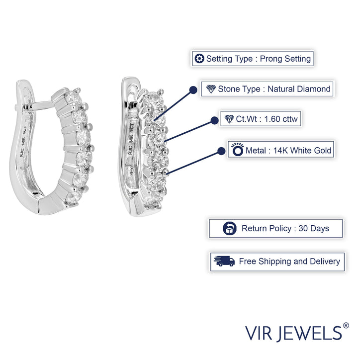1.60 cttw Diamond Hoop Earrings 14K White Gold