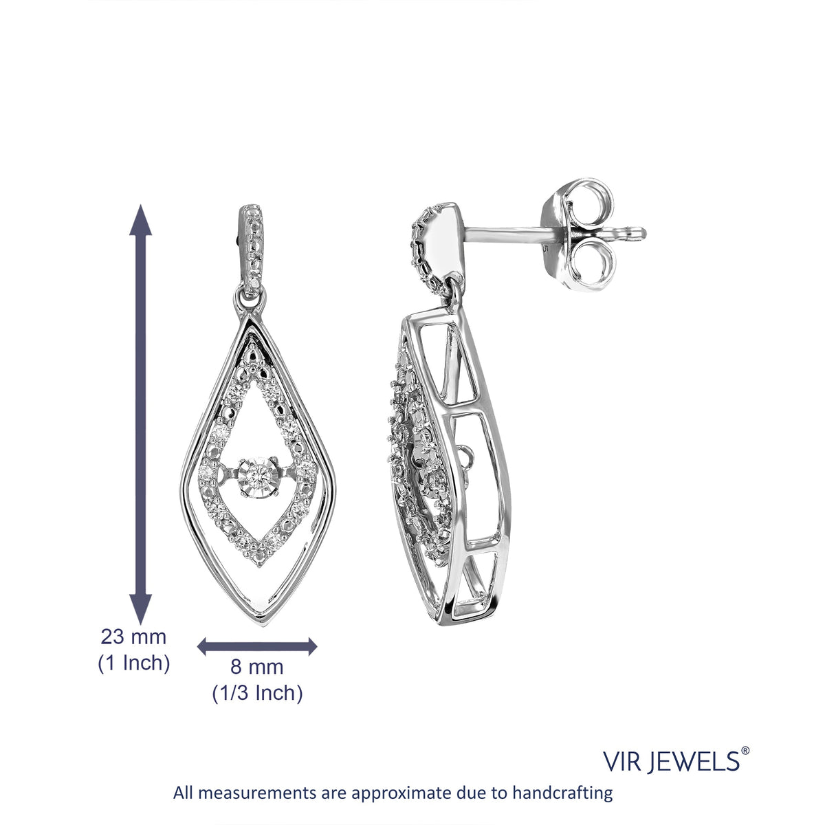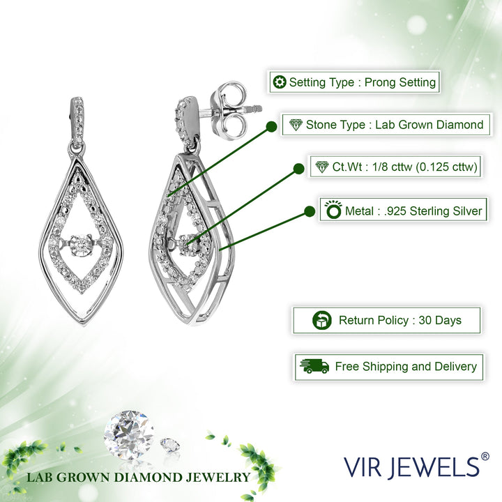 These 1/8 cttw 22 Stones Round Lab Grown Diamond Dangle Earrings in .925 Sterling Silver by Vir Jewels offer a classic yet modern design, featuring 22 round lab-grown diamonds set in prong settings. The diamonds are secured with a push-back closure, and the earrings’ dangle style adds an elegant movement that catches the light beautifully. These earrings are perfect for any occasion, adding a subtle sparkle to your look.
