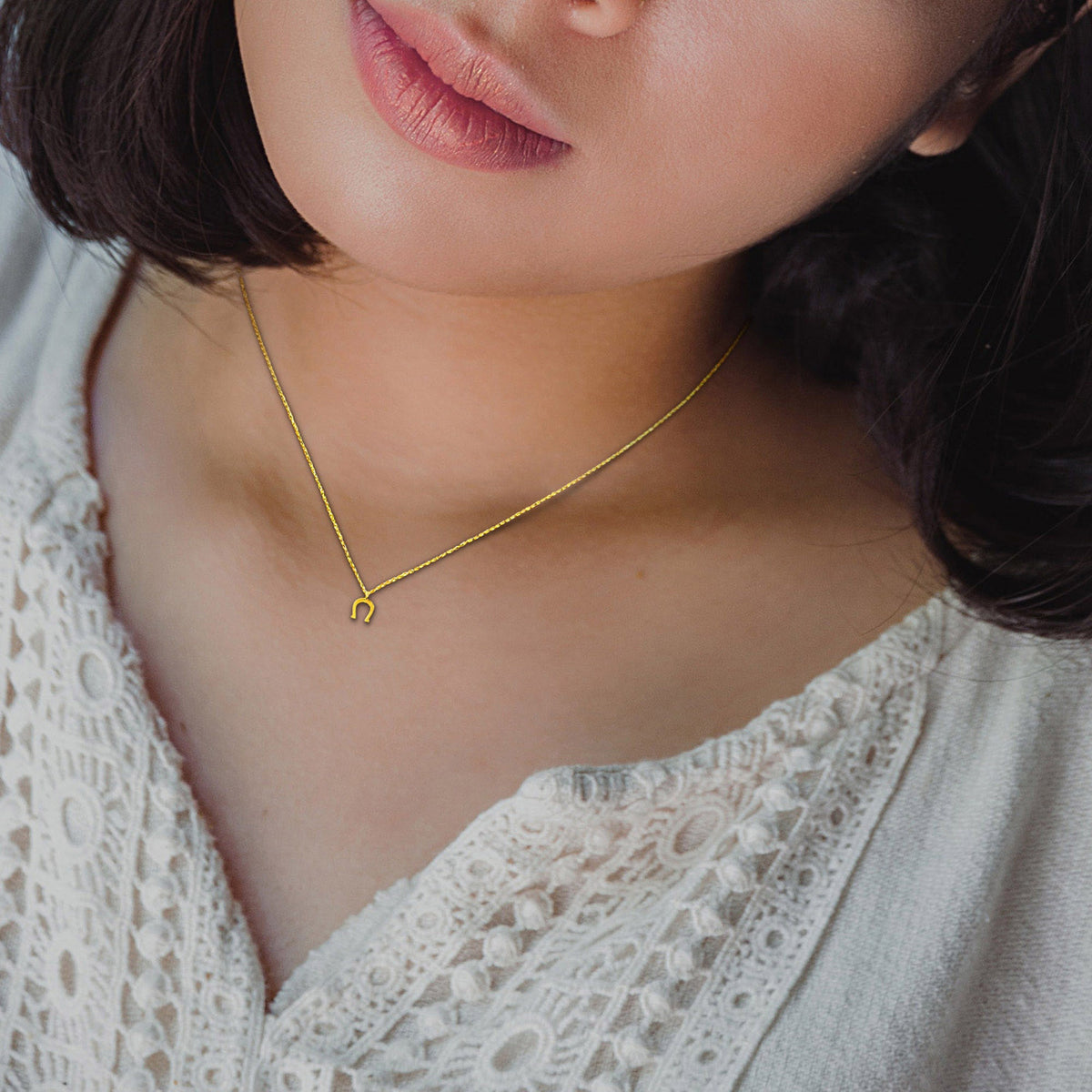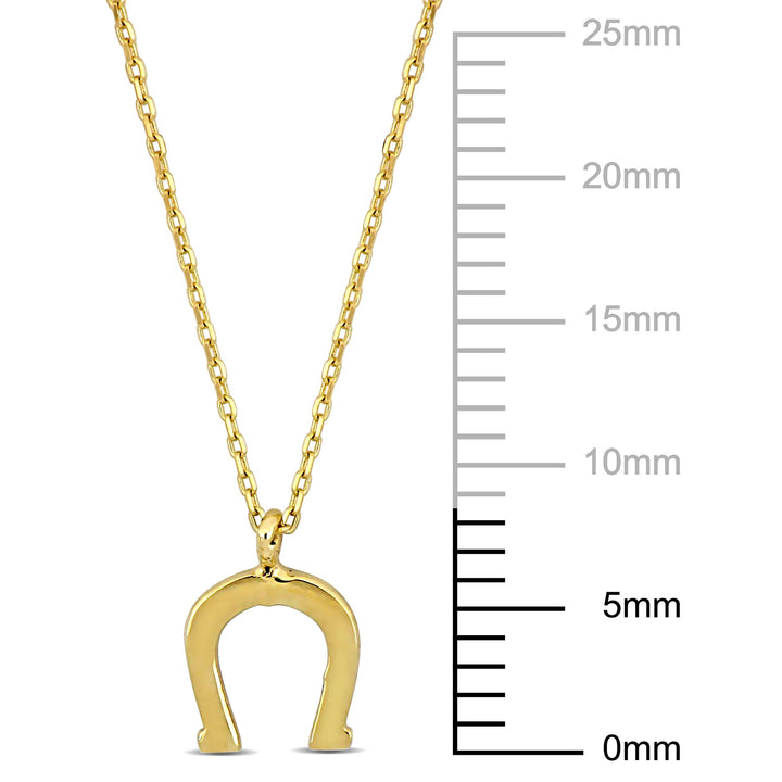 Crafted in 14K yellow gold with a horseshoe pendant. Chain length: 17 inches with a spring ring clasp.