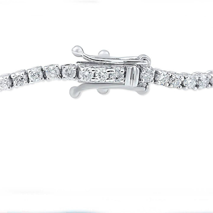 Features round brilliant-cut lab-grown diamonds, prong set in 14k white gold. Total diamond weight: 3ct. Bracelet length: 7 inches. Double lock clasp for secure fastening.
