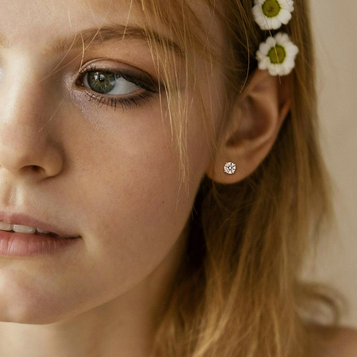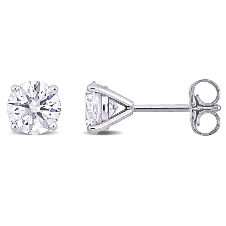 Set with 1 1/2ct total lab-grown diamonds, crafted in 14k white gold. Secured with butterfly backs for easy wear.