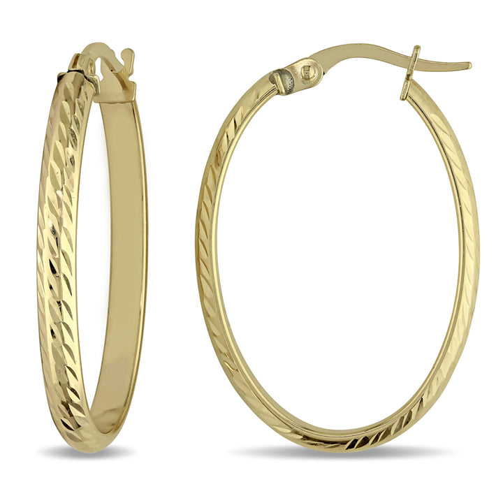 Mimi & Max Edged Hinged Hoop Earrings in Textured 10k Yellow Gold