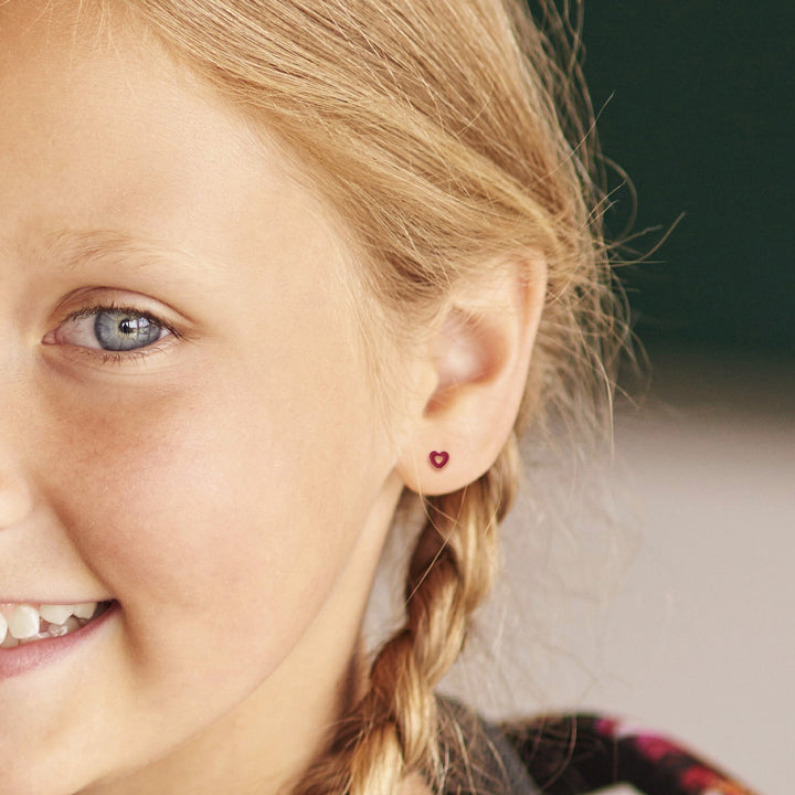 Mimi & Max Heart Enamel Stud Earrings in 14k Yellow Gold