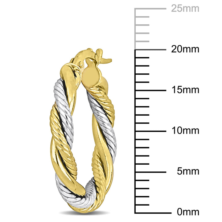 Mimi & Max 20mm Twisted Hoop Earrings in 10k Yellow and White Gold