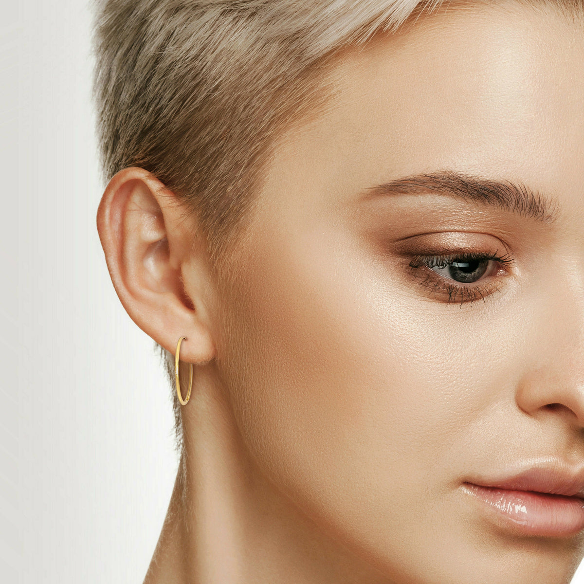 14k yellow gold. 25mm diameter. 1.2mm width.