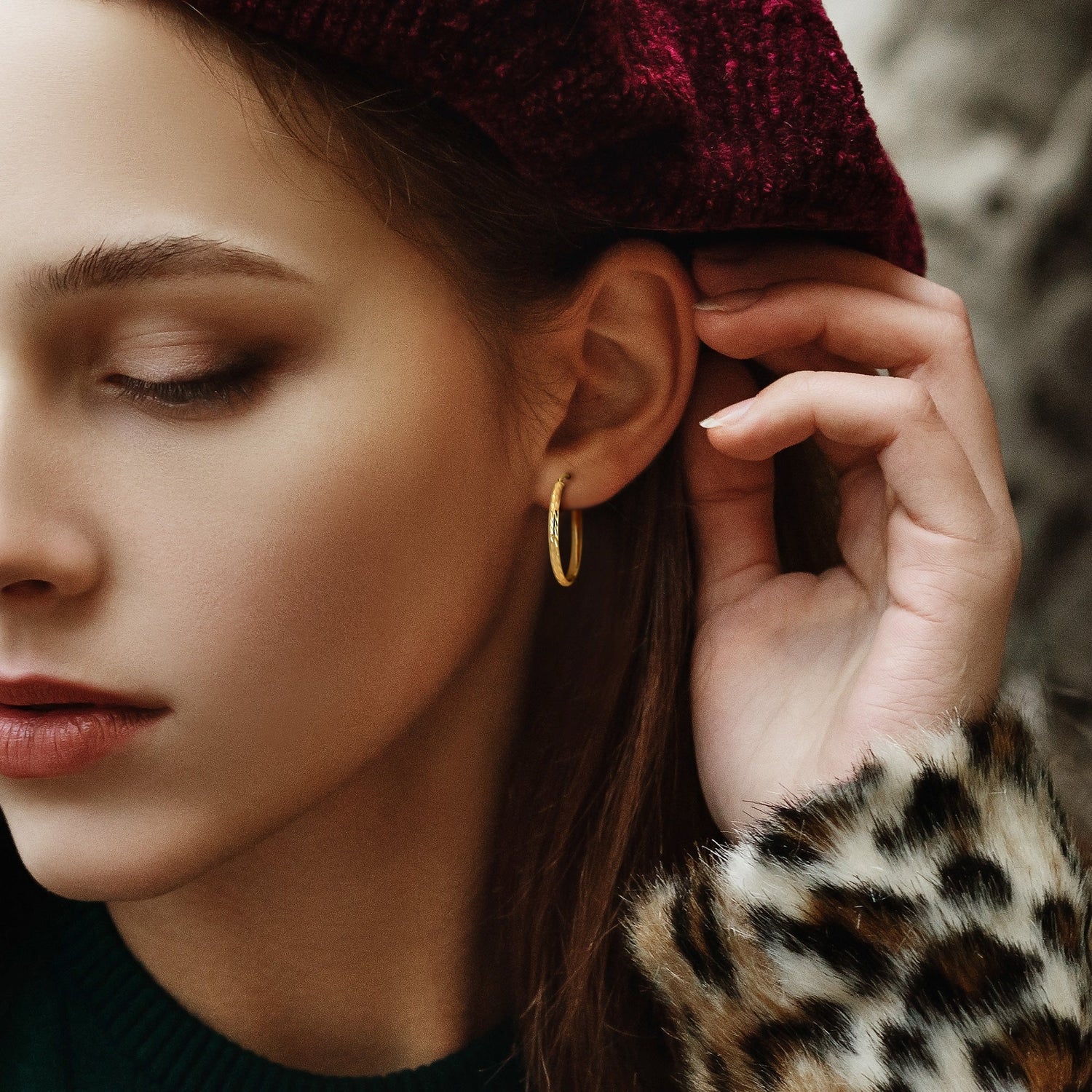 10k yellow gold. Textured oval design. Dimensions: 29mm hoop. Clip-in closures.