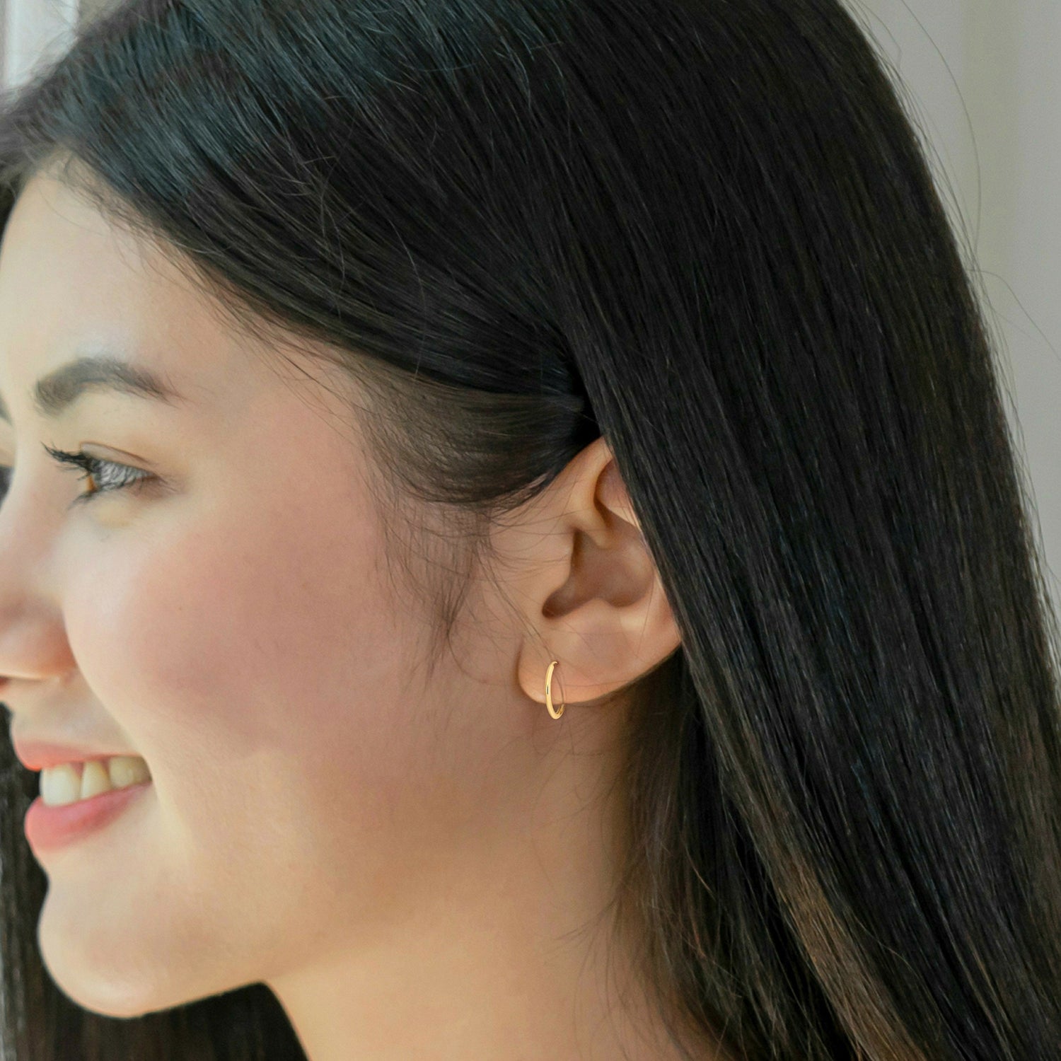 These Mimi & Max 13mm Hoop Earrings in 14k Yellow Gold offer a classic yet contemporary look. Crafted in lustrous 14k yellow gold, these huggie-style hoop earrings are both dainty and comfortable. With a 13mm diameter and a 1.2mm width, they provide a chic, stylish accent to any look. Perfect for everyday wear, they comfortably hug the earlobe with their lightweight design.