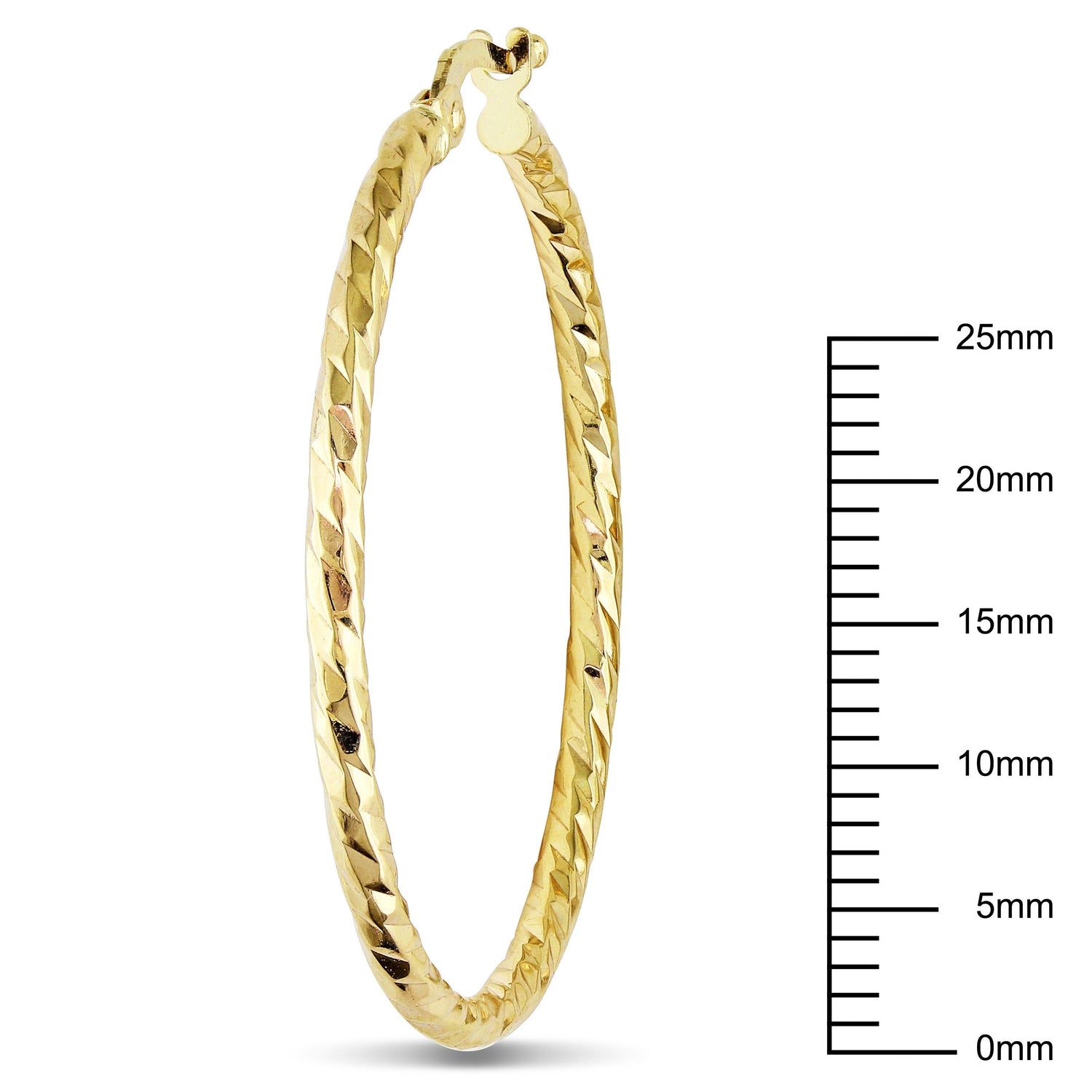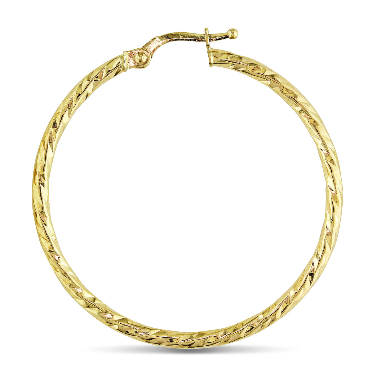 10k yellow gold. Diamond-cut finish. Dimensions: 35mm hoop. Clip-in closures.