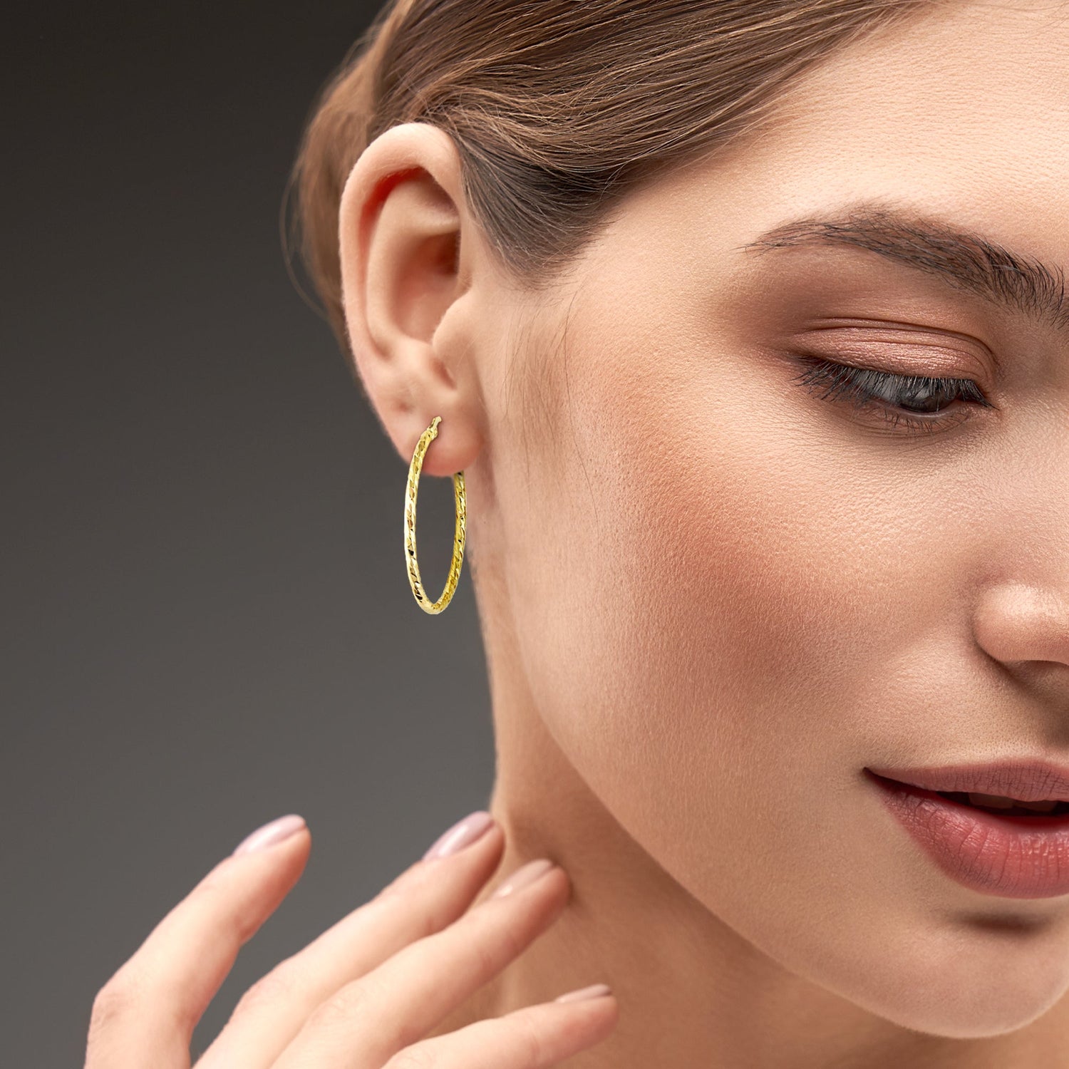 Mimi & Max 35mm Diamond Cut Hoop Earrings in 10k Yellow Gold