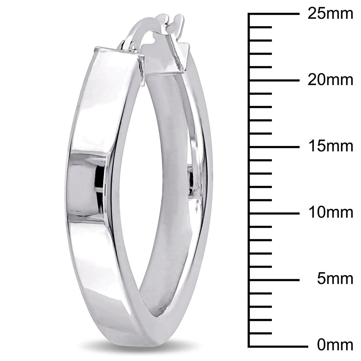 Made from 10K white gold with a high polish finish. Earring dimensions: 4mm wide x 25mm long x 25mm deep. Weight: 2.7 grams.