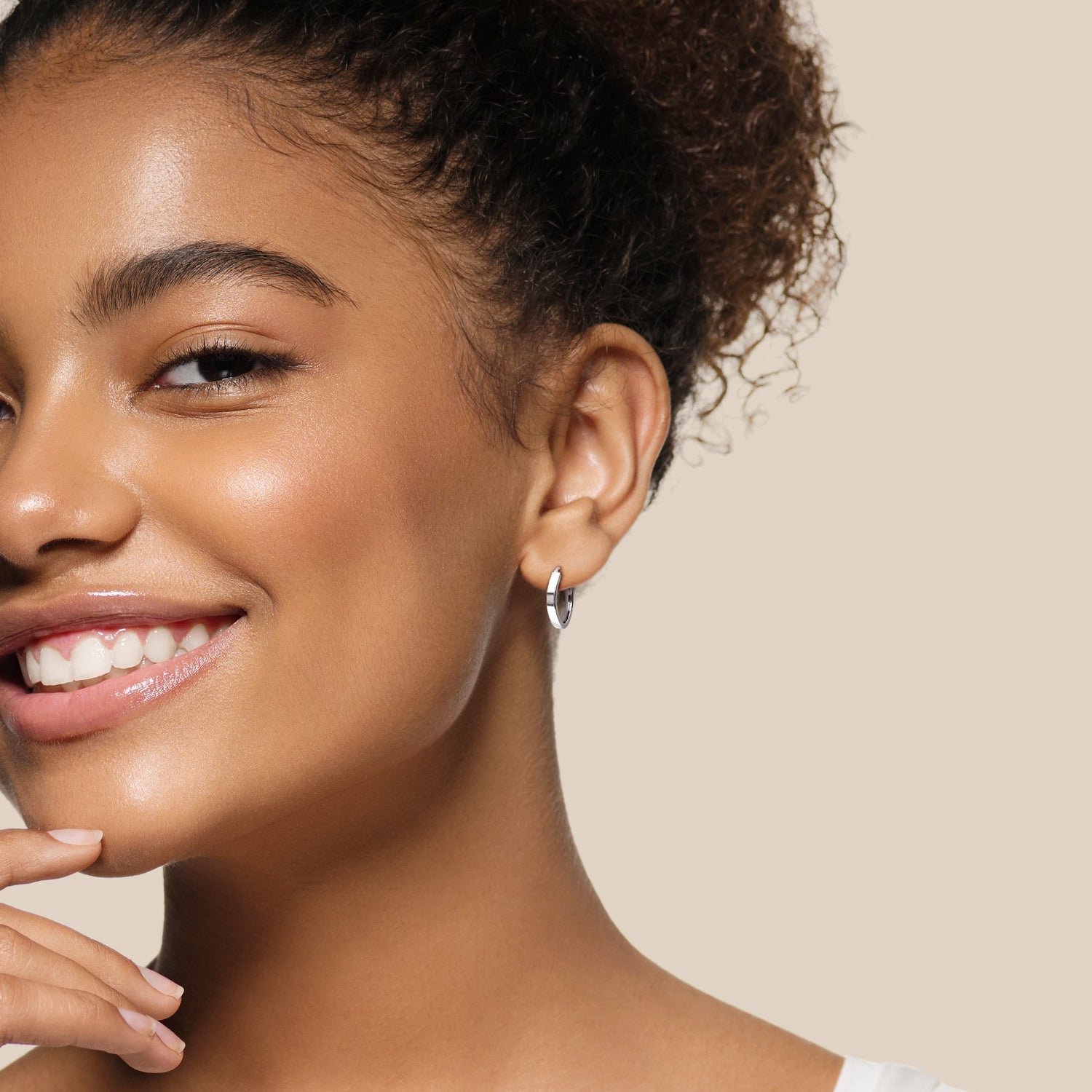 Mimi & Max Geometric Hoop Earrings in 10k Polished White Gold
