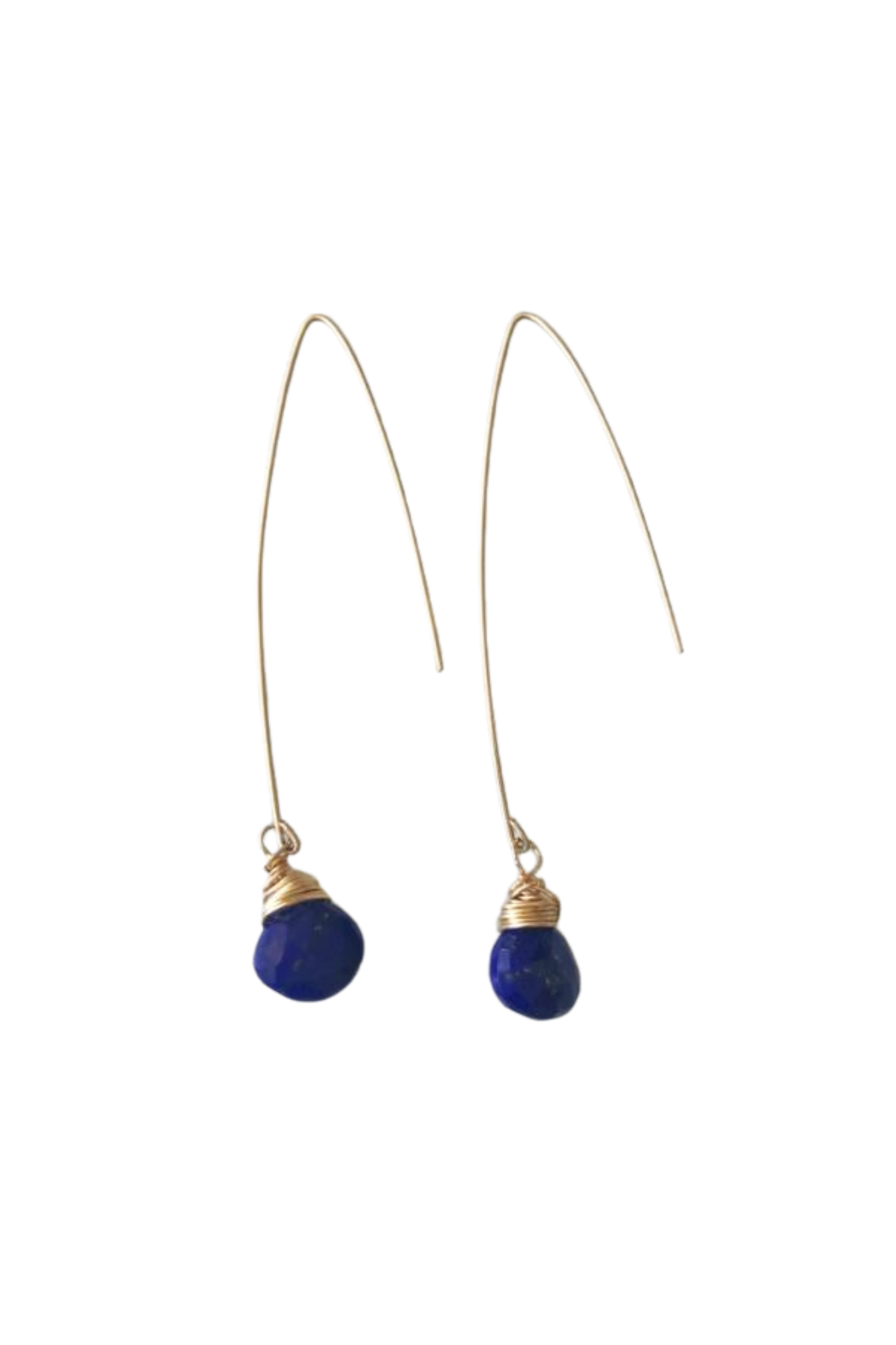 These Jill Long Wire Drop Earrings in Sapphire by A Blonde and Her Bag are effortlessly elegant. A long, delicate wire drop showcases a stunning sapphire gemstone, hand-wrapped in either 14k gold-fill or sterling silver. Their minimalist design makes them perfect for both casual and formal occasions.