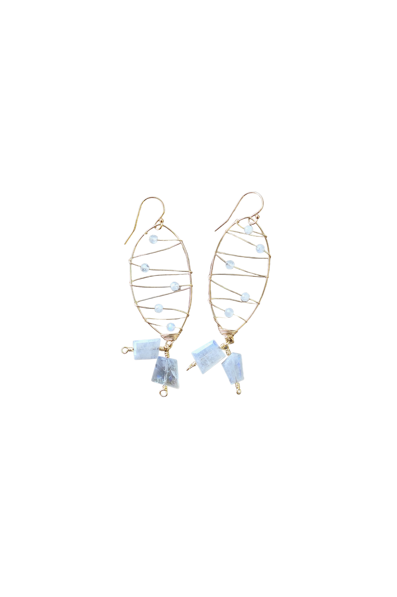 This Malibu Earring in Moonstone by A Blonde and Her Bag is a captivating nod to the ocean with its dolphin-tail-inspired silhouette. The gold dangle design is adorned with moonstone accents, creating a serene, fluid movement with every turn. A perfect statement for those drawn to coastal-inspired elegance.