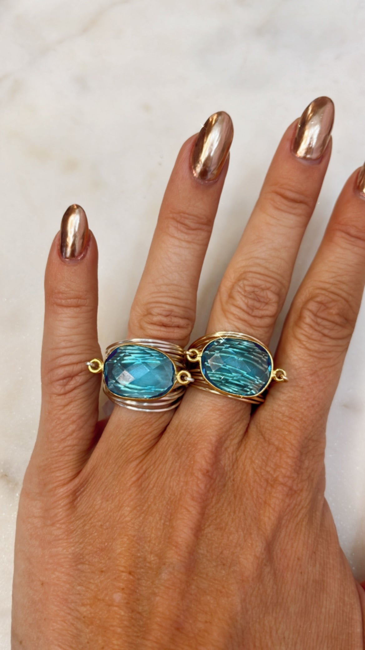 This Torrey Ring in Blue Topaz by A Blonde and Her Bag is a statement of effortless elegance. Showcasing a bezel-set blue topaz, this handcrafted ring radiates serenity and sophistication. The sky-blue hue of the gemstone is believed to promote clarity and communication, making it not just a stylish accessory but also a meaningful piece. Perfect for stacking or wearing solo, each ring is unique due to the natural variation of the stones.