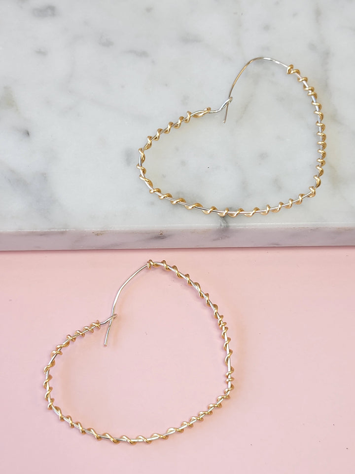 Wrapped Around the Heart Earring in Silver with Gold Wrap