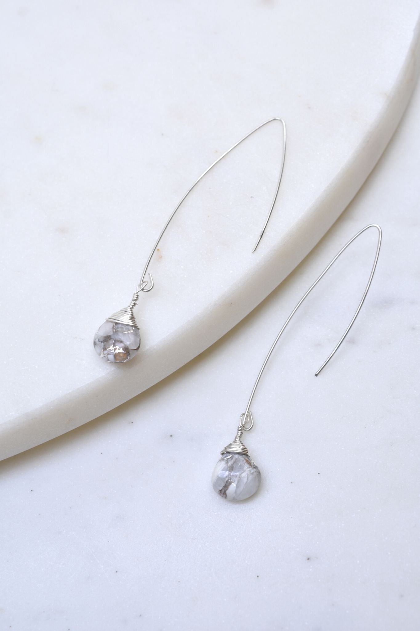 Jill Long Drop Earring in White Mojave Copper Turquoise