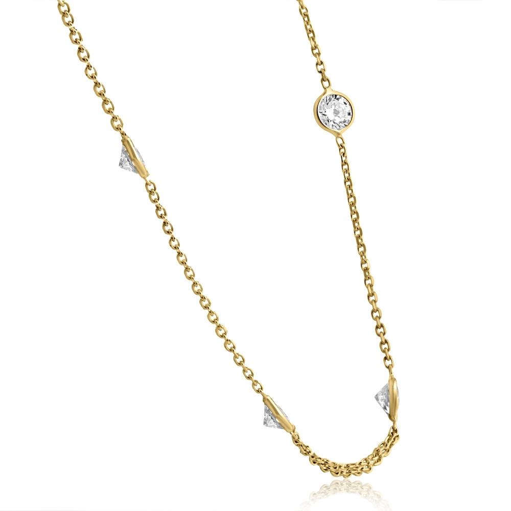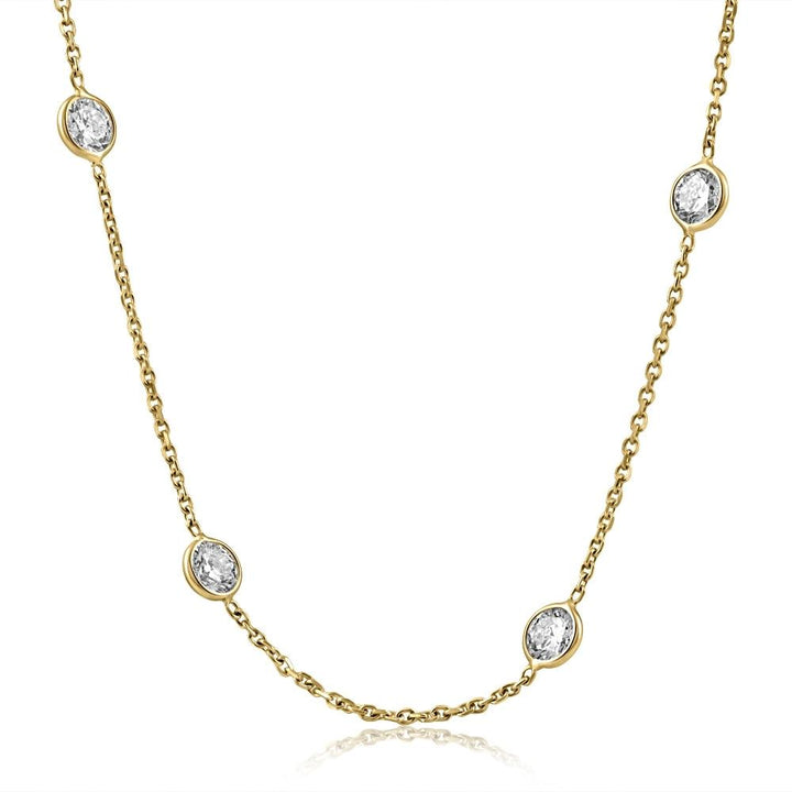 The 4Ct Diamonds By The Yard Necklace by Pompeii3 features 10 round brilliant cut lab-grown diamonds, all bezel set in solid 14k yellow gold. The necklace measures 18' in length and features a lobster clasp for security.
