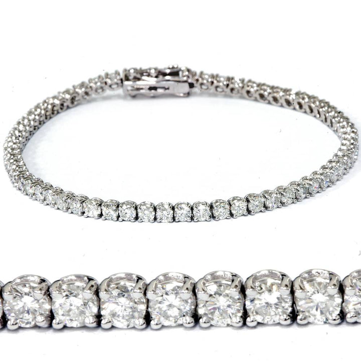 4.22 ct total diamond weight, round brilliant cut diamonds set in 18k white gold. 7' length, double-locking clasp.