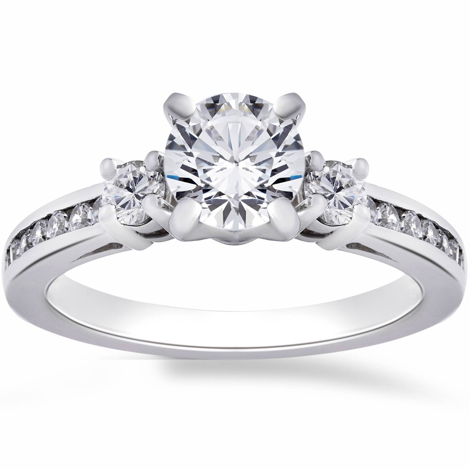 1ct Three Stone Diamond Engagement Anniversary Ring 14K White Gold