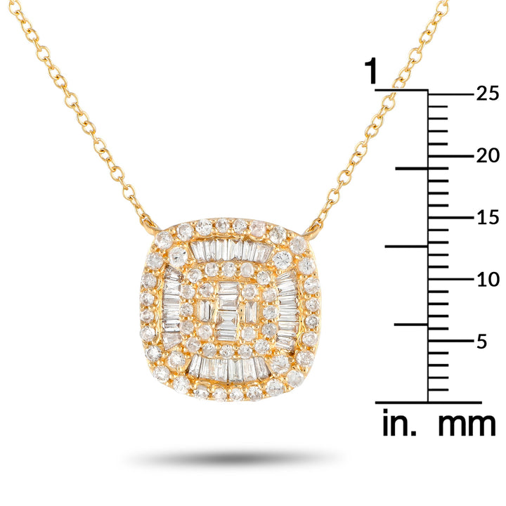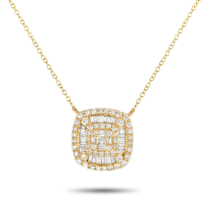 LB Exclusive 14K Yellow Gold 0.50ct Diamond Cluster Cushion Necklace PN14750