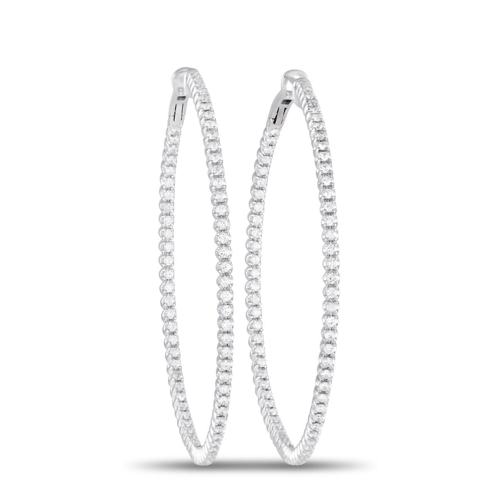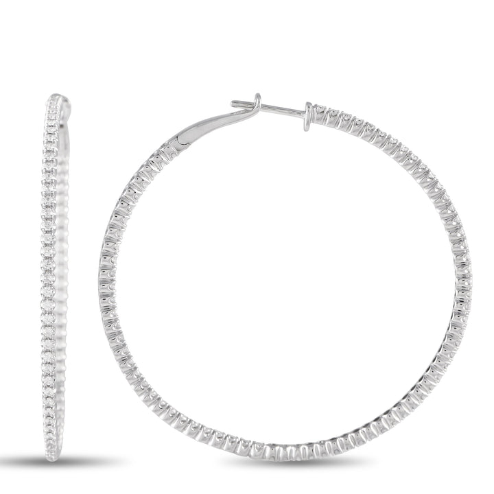 LB Exclusive 14K White Gold 1.70ct Diamond Inisde-Out Hoop Earrings MF05-101223
