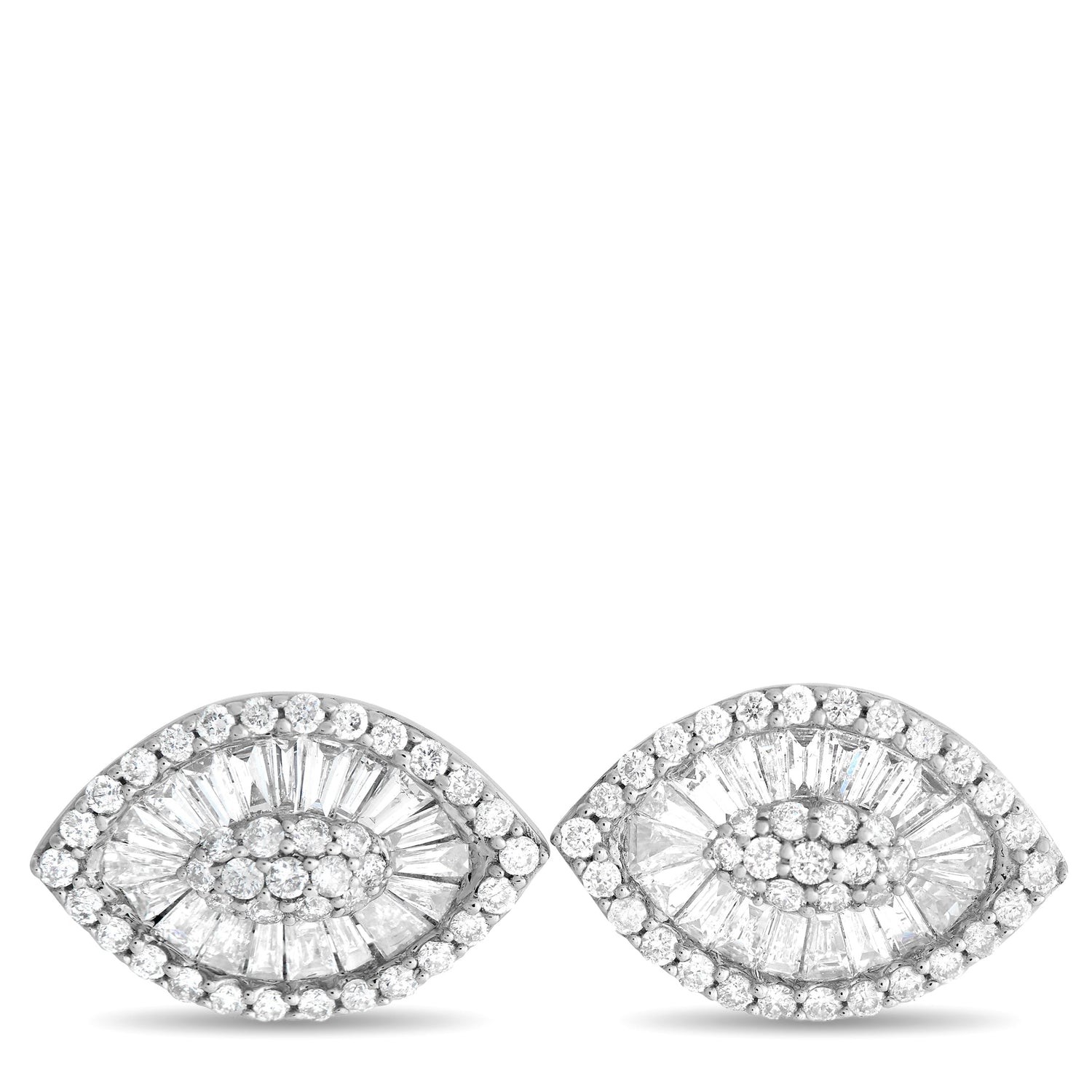 These LB Exclusive 14K White Gold 1.05ct Diamond Earrings by Luxury Bazaar are a masterclass in refined brilliance. Featuring ellipse-shaped designs illuminated by dazzling diamonds, these earrings exude opulence while remaining effortlessly wearable. Perfect for special occasions or elevating daily attire, they offer timeless sparkle and lasting allure.