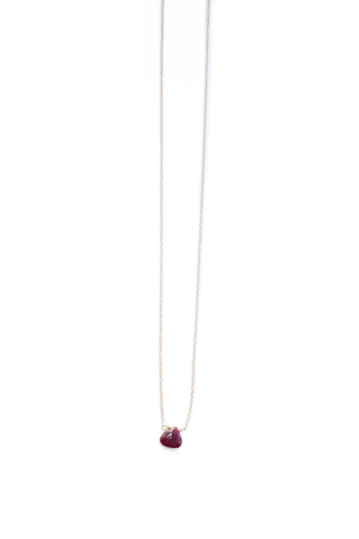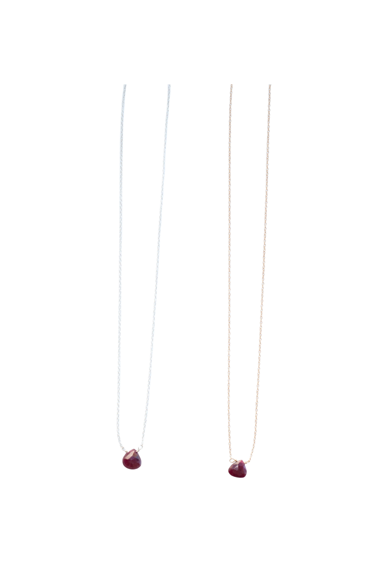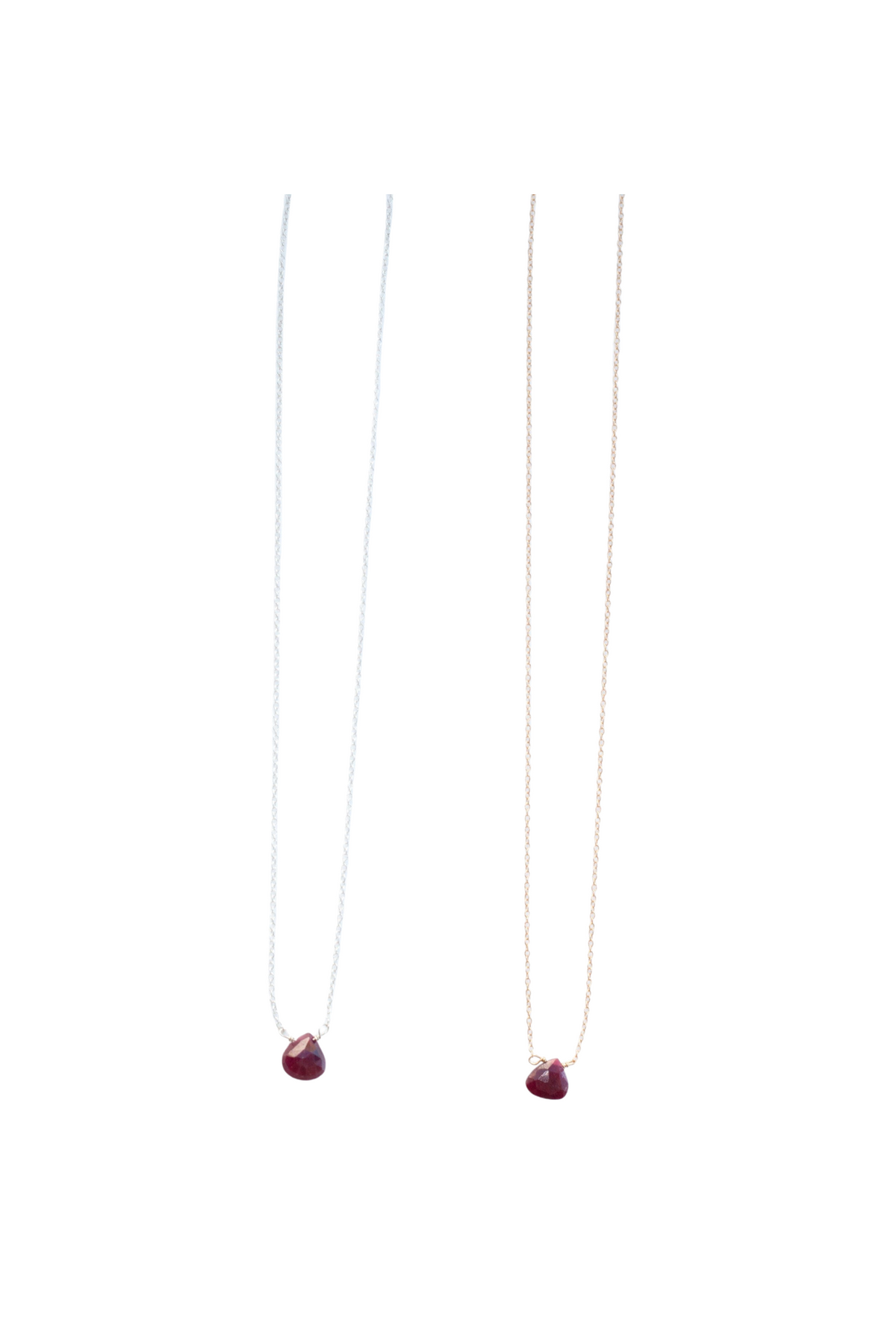 The Stephanie Delicate Drop Demi Fine Necklace in Ruby by A Blonde and Her Bag is an elegant piece featuring a petite drop pendant made of semi-precious ruby on either a 14k gold fill or sterling silver chain. Perfect for layering or as a subtle statement piece, it adds a touch of color and charm to any outfit.