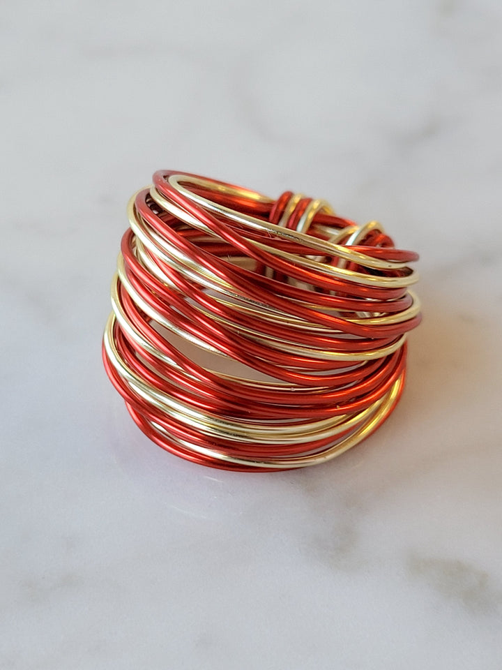 Marcia Wire Wrap Ring in Red and Gold
